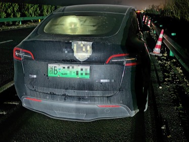 特斯拉半路没电 司机不熟悉机械开门装置被困车内 交警赶到救援 ...