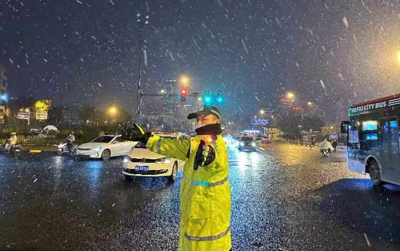 合肥迎来今冬第一场雪,交警全力保障平安回家路