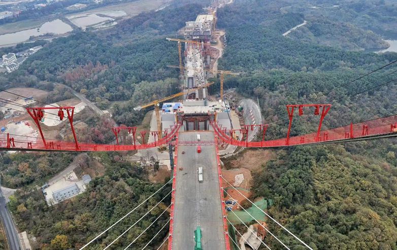 “红色长龙”初显 G3铜陵长江公铁大桥主缆索股开始架设