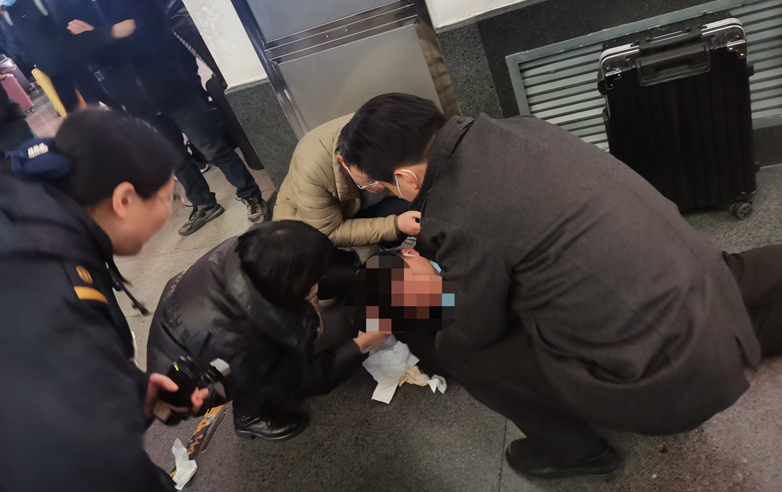 男子高铁站内突发晕厥 合肥医护团队紧急救护