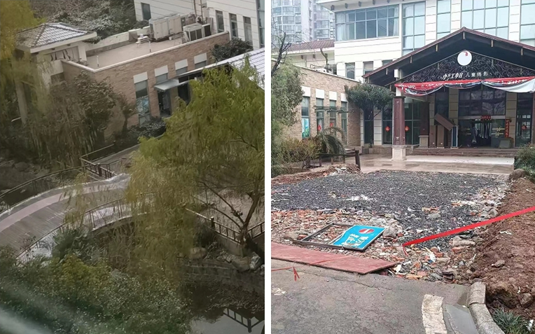 合肥利港银河新城小区内一景观木拱桥被拆 街道:已要求停工