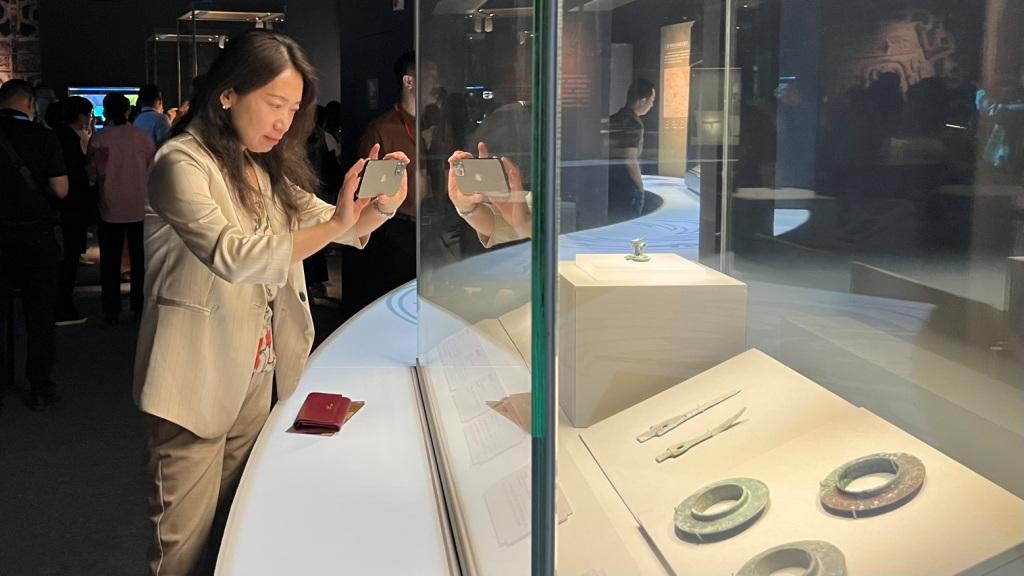 4月20日上午,在安徽博物院新馆二楼临展厅,一件件重量级青铜重器串联起从巴山蜀水到江南水乡的千年文脉。