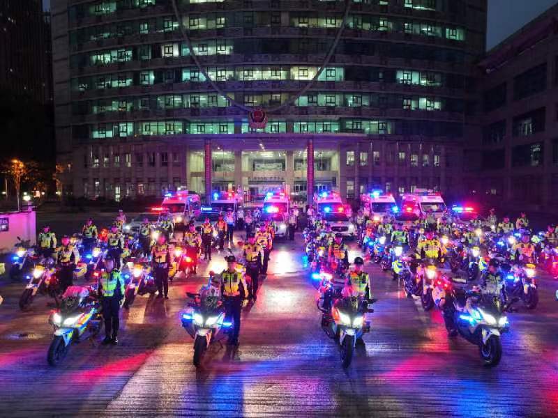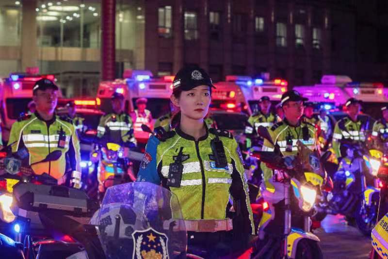 街头巷尾闪烁的蓝红警灯、民警巡逻的藏蓝身影为城市夜景增添了一层靓丽的“保护色”。