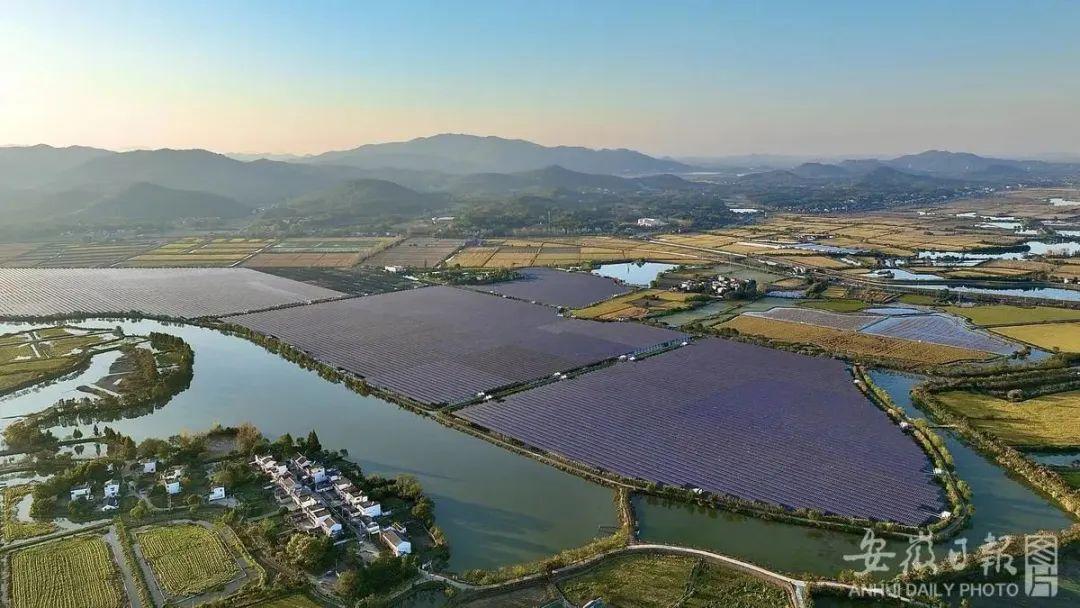 11月1日,在芜湖市繁昌区平铺镇岱湖滩的渔光互补光伏电站。钱鸣 摄