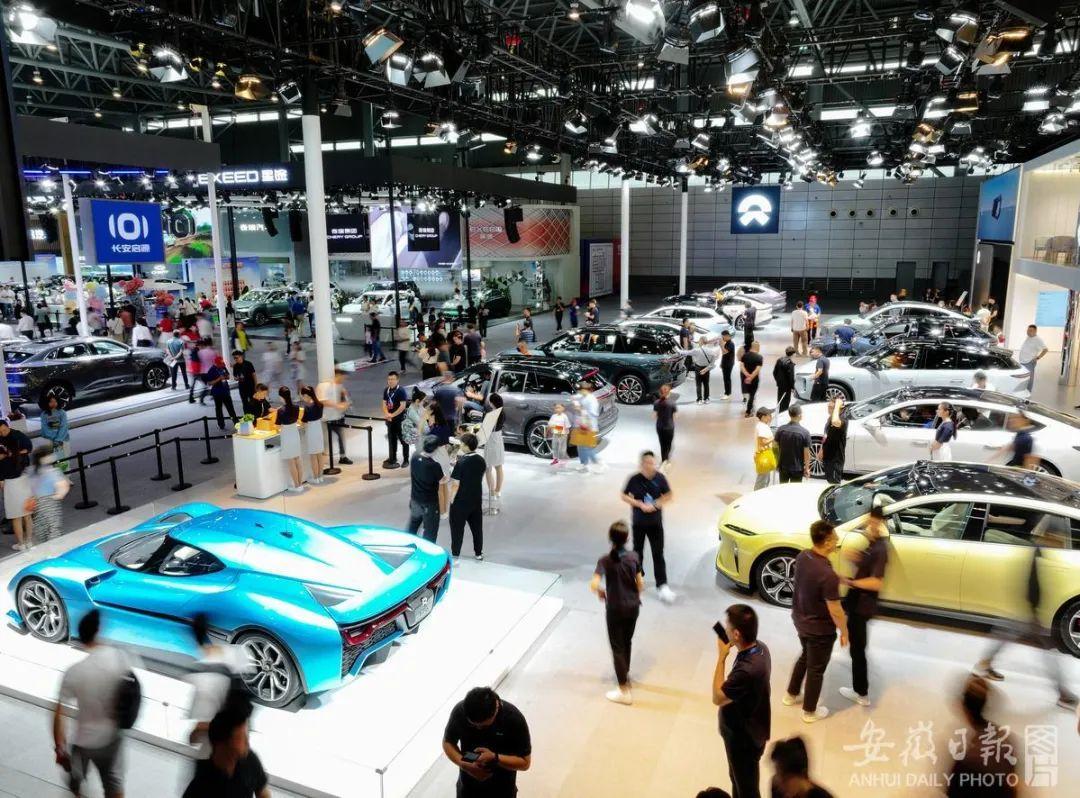 资料图:在合肥国际新能源汽车展览会现场,众多市民在皖产新能源汽车展区驻足选车。(徐旻昊 摄)