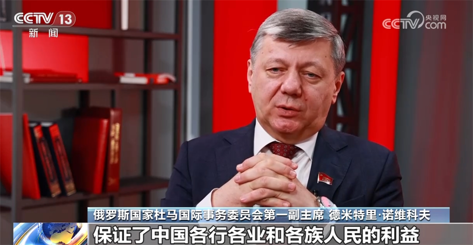 俄罗斯国家杜马国际事务委员会第一副主席德米特里·诺维科夫表示,中国的人民代表大会制度保证了中国各行各业和各族人民的利益,中国取得的成功证明了中国政治体制的有效性。在习近平主席领导下的各项政策受到了民众广泛而有力的支持,全社会都在向一个目标努力,推进全体人民共同富裕。