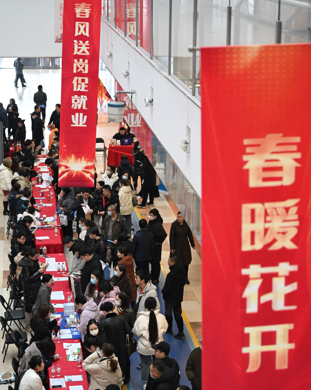 2024年2月29日,天津市东丽区举行招聘会,采取“线上+线下”结合的方式,精准人岗对接,解决企业用工难题。新华社记者 孙凡越 摄