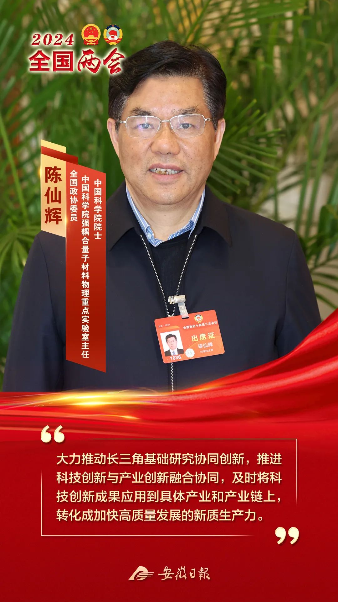 3月5日,出席十四届全国人大二次会议的安徽代表团代表俞书宏、彭寿、王运敏,出席全国政协十四届二次会议的住皖全国政协委员陈仙辉4位中国科学院、中国工程院院士,与记者畅谈心声,热议新质生产力,为科技创新建言。