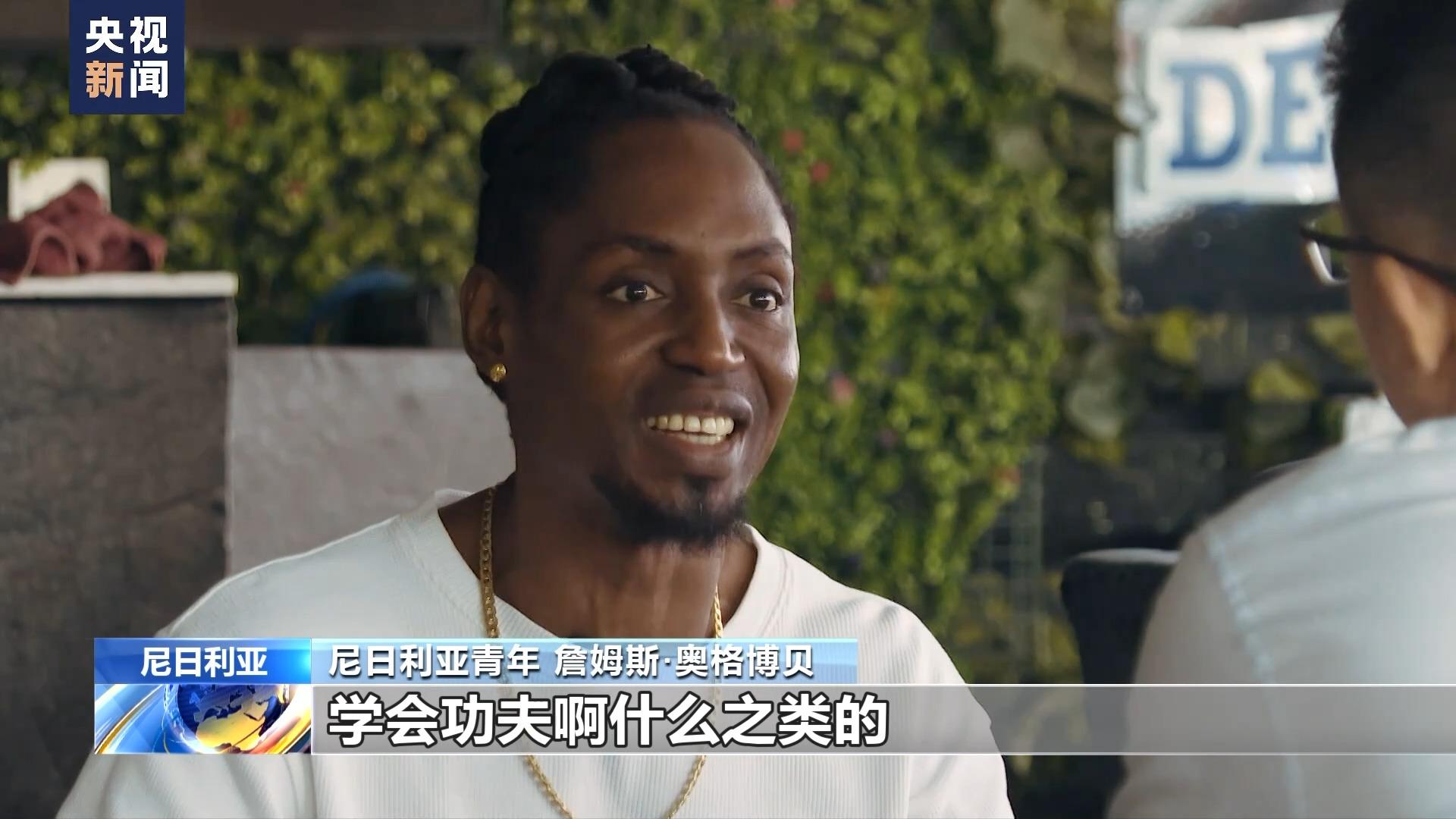 尼日利亚青年 詹姆斯·奥格博贝:我这辈子都是感谢中国人为尼日利亚做的那么多事情。你说尼日利亚的路不好,谁来帮修的?还是中国人。我现在的想法是在尼日利亚能拍把中国的故事讲在这个尼日利亚的故事(电影)里面去,写中尼的这个故事。