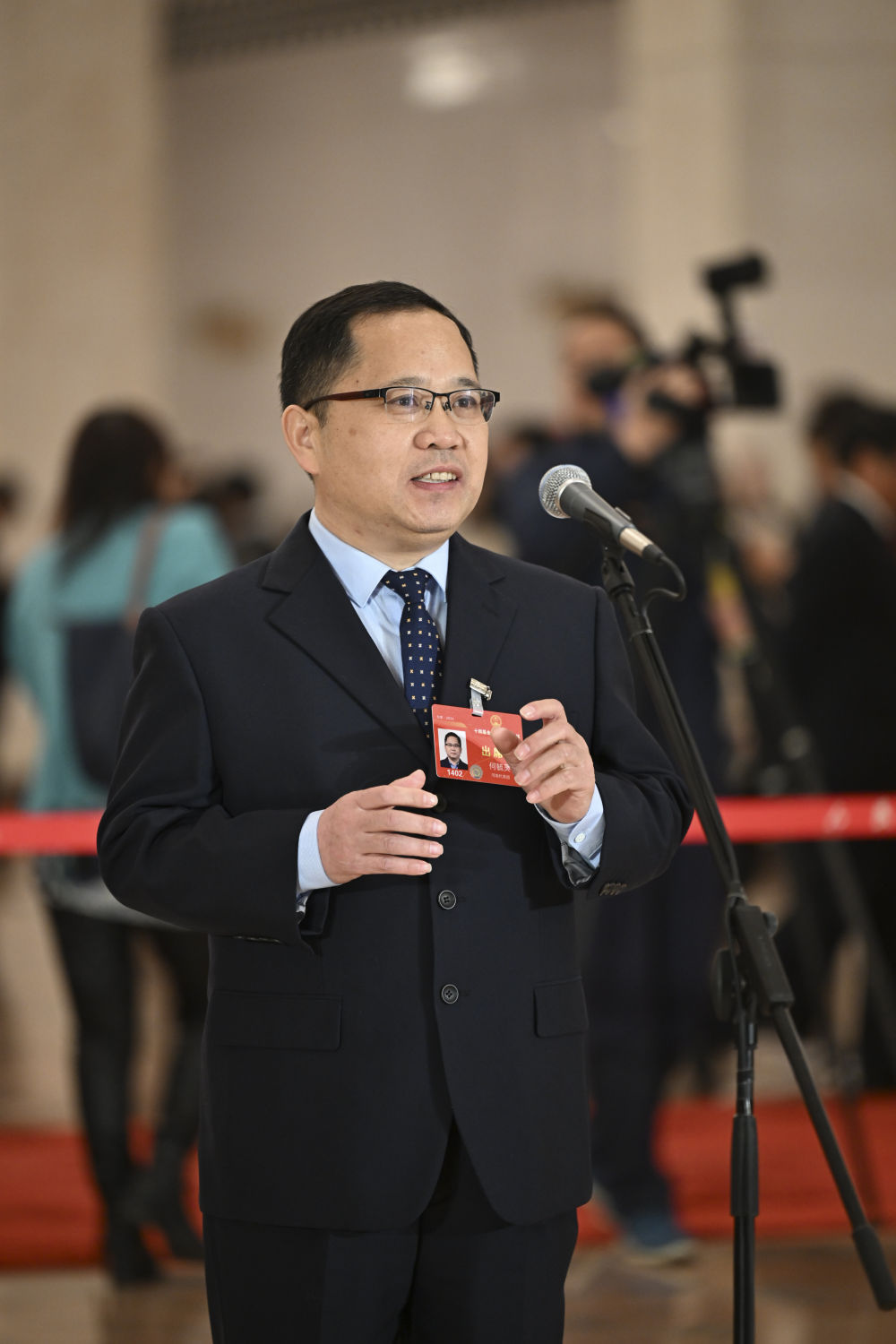3月5日举行的首场“代表通道”集中采访活动上,全国人大代表何毓灵接受媒体采访。