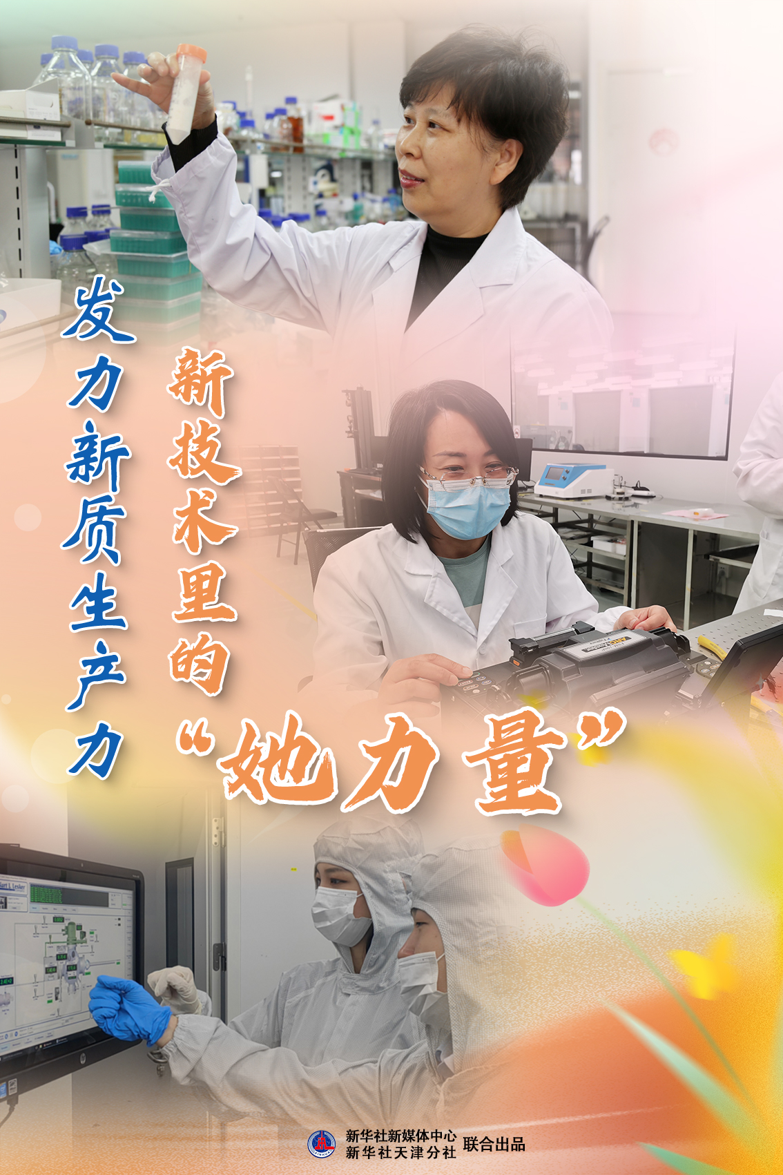 新华社天津3月6日电(记者栗雅婷、徐思钰)换上洁白的工作服,戴上口罩,49岁的衣永青走进熟悉的实验室,在里面一干就是六七个小时。在她眼里,实验室是自己“挥洒汗水的战场”,也是“结出硕果的土地”。衣永青是中国电子科技集团公司第四十六研究所特种光纤材料研发中心副主任,大学毕业后的20多年来,她一直从事特种光纤的研发与生产工作,扎根科研一线。“或许在许多人眼里,科研工作比较‘高大上’,但我们从事基础材料研究有时却是枯燥且有一定危险性的。”衣永青说,在光纤制备工序中,要经常跟高浓度的有毒有害化学试剂打交道;在2000多摄氏度的高温下进行预制棒制备,需要经常打开玻璃罩门近距离观察试验过程……衣永青正在对光纤进行测试。新华社发50瓦、100瓦……直到2017年,衣永青带领团队研制出第一根单纤万瓦激光光纤,突破了核心技术难题。衣永青难掩自豪地说:“现如今国内激光光纤功率已达到更高水平,成本显著降低。我们目前已开发出数十种特种光纤产品,实现成果转化,一年销售的光纤长达1.5万公里。”“持之以恒”是衣永青从事科学研究的“法宝”,在她看来女性科技工作者在细节、耐力、敏锐度等方面具有自己的独特优势。中国科学院天津工业生物技术研究所研究员孙媛霞对此深有同感,25年来,她一直坚守在糖工程科研一线,从事“甜蜜研究”的她说起话来也甜甜柔柔的。在孙媛霞的团队中,超过60%的研究人员都是女性。孙媛霞在实验室中展示糖。新华社发“稀少糖一般热量低、升糖指数低,是肥胖人群、糖尿病人群的理想糖,对于慢病防治有重要意义,但稀少糖在自然界中的存量非常低,提取困难。”近些年,孙媛霞带领团队建立了以稀少糖生物转化合成为特色的糖生物工程研究平台,推动了功能性稀少糖产业的发展,十余项发明专利实现成果转化。2023年,孙媛霞团队还实现了从二氧化碳到糖的精准全合成,引发了社会各界关注。孙媛霞说:“与通过种植甘蔗等农作物提取糖的传统方式相比,二氧化碳合成糖无需过多依赖土地、水等资源,糖的获取时长也实现了从‘年’到‘小时’的跨越。”科研成就的背后离不开辛苦的付出。做实验、开组会、争取科研项目、去企业调研、批改指导学生论文……孙媛霞的一天总是安排得满满当当,在她看来认真和耐心是科研工作者的必备修养。宋学颖(左)正在查看工艺和设备情况。新华社发今年36岁的宋学颖是天津华慧芯科技集团有限公司总裁,她所在的公司主要从事微纳光电子芯片制造与服务,产品被广泛应用于自动驾驶、增强现实等多个领域。作为企业管理者,宋学颖一直在为企业的科技研发“保驾护航”。在“芯”赛道上,宋学颖已经走了近7年。“我们的项目团队为500余个科研团队和企业提供了定制化的芯片加工和工艺研发服务,只有技术过硬,敢于创新,才能应对市场和时代的变化。”宋学颖说。2022年,她还领衔成立了“宋学颖劳模和工匠人才创新工作室”,培养了一批科技创新人才,其中不乏女性的身影。“发展新质生产力要求我们敢于创新,用科技推动社会发展。我身边有许多女性都在积极学习新技术、接触新事物,激发创新创造活力,‘她力量’在推动新质生产力发展过程中扮演着重要角色。”宋学颖说。策划:于卫亚、邵香云、曹晓轩记者:栗雅婷、徐思钰海报:方金洋