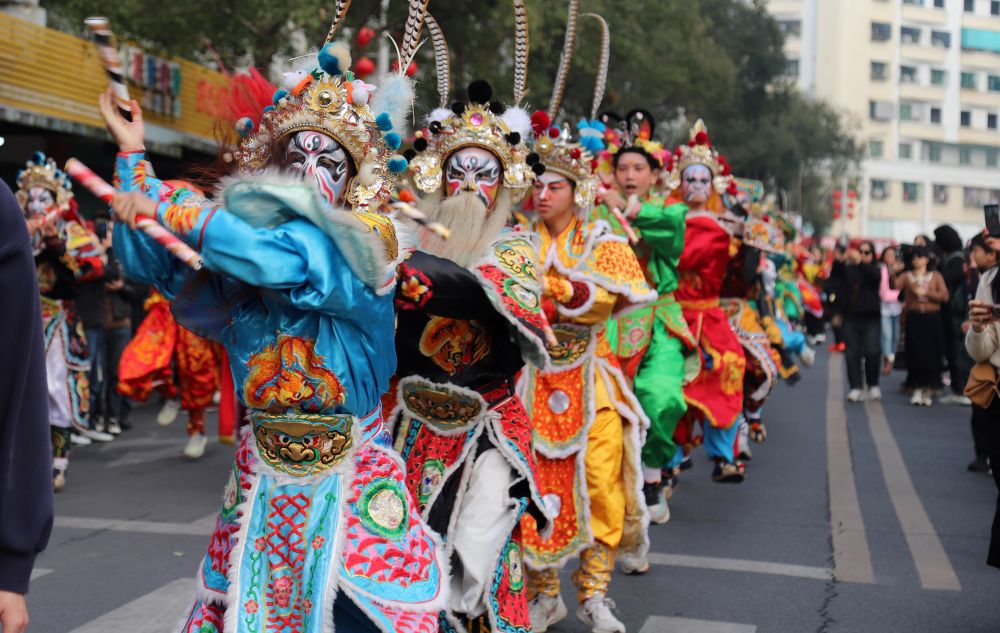 2024年2月14日,广东省汕头市潮阳区2024年春节英歌舞展演巡游活动火热上演。 新华社发(姚军摄)