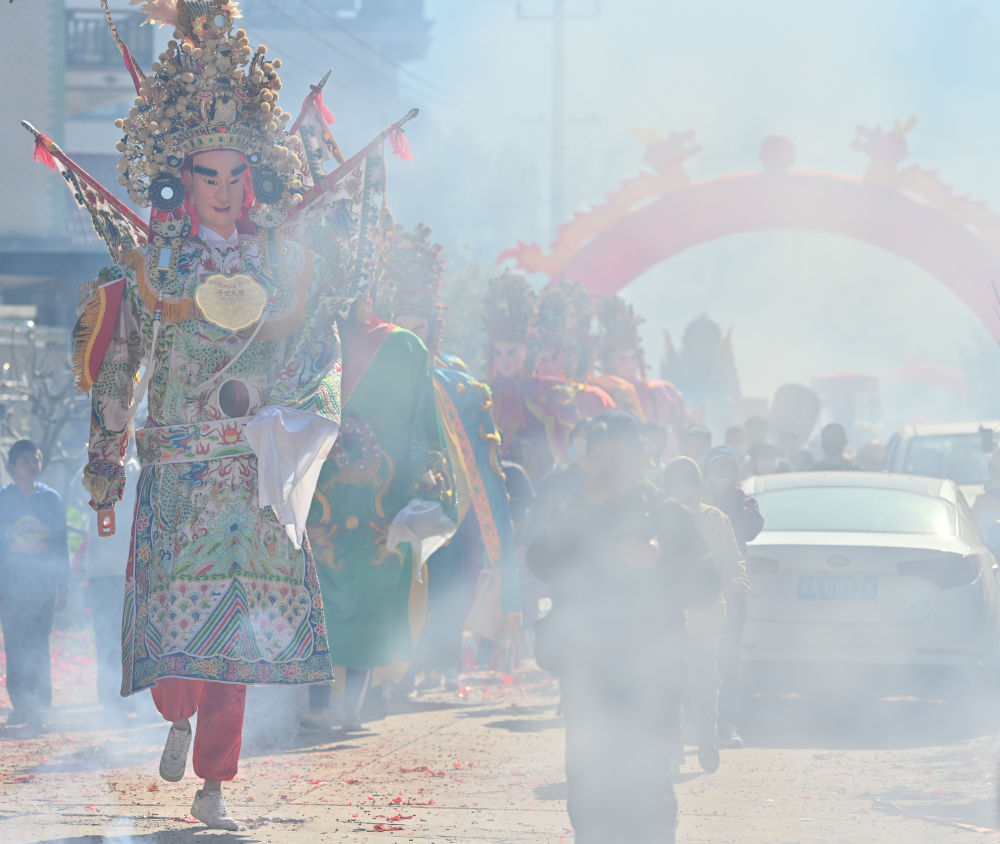 2024年2月12日正月初三,人们在福建省福州市长乐区玉田镇琅峰村参加游神民俗活动。 新华社记者 宋为伟 摄