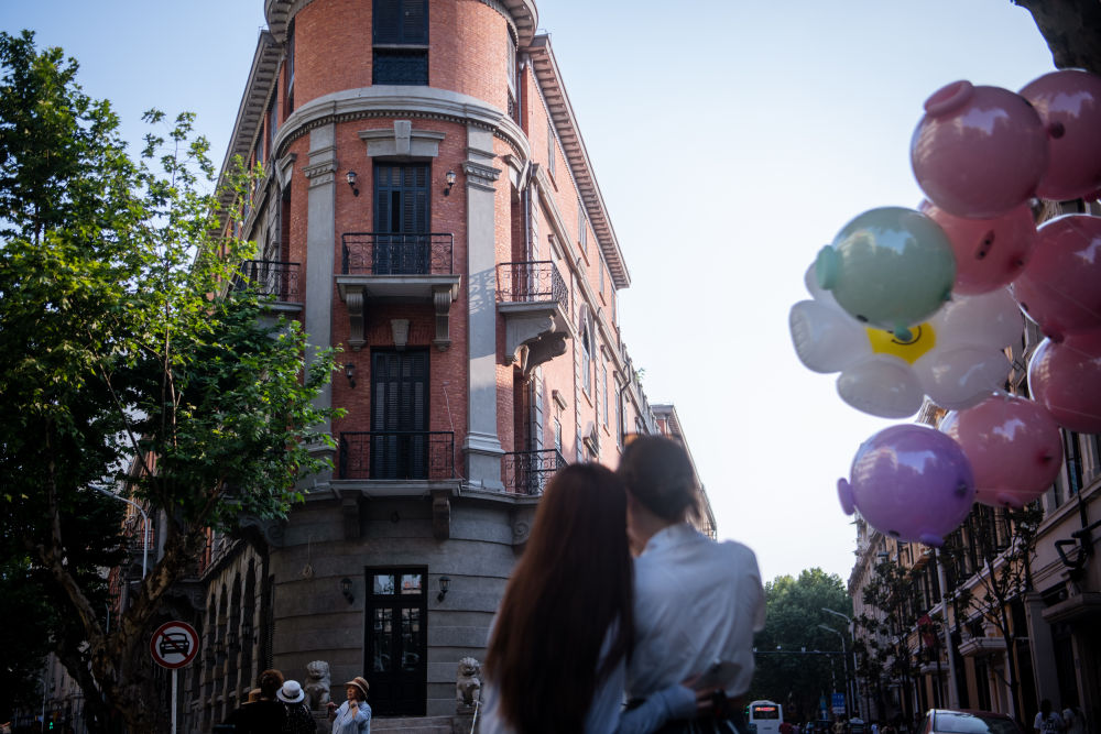 2023年6月6日,游客在武汉市汉口历史风貌区巴公房子前拍照。随着汉口历史风貌区旧城改造城市更新项目的推进,风貌区内一座座老建筑被修缮、改造,融入现代生活,焕发新的生命。 新华社记者 伍志尊 摄