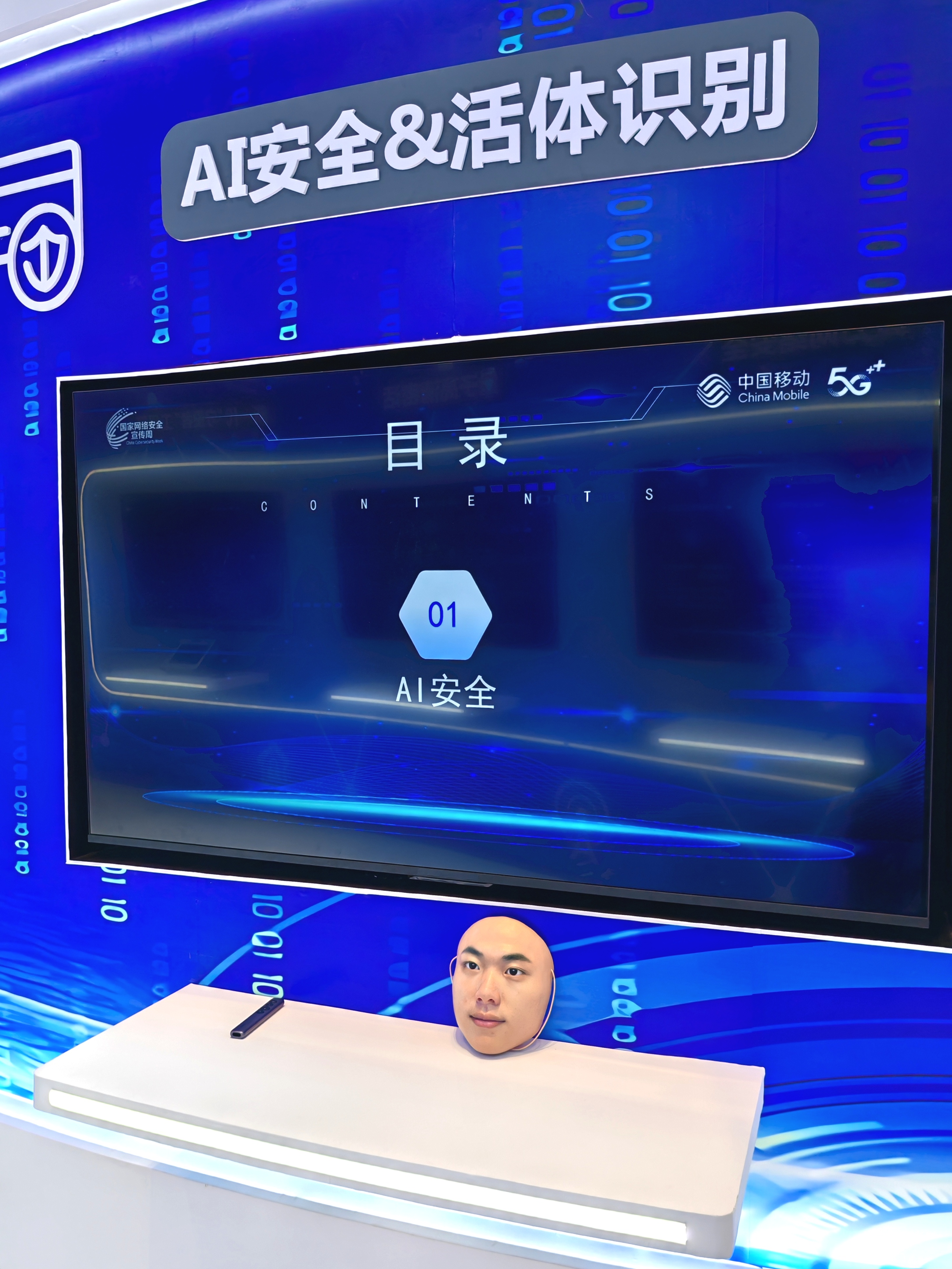 图为中国移动集团展示的AI安全&活体识别技术。中国经济网记者 梁秋亚摄
