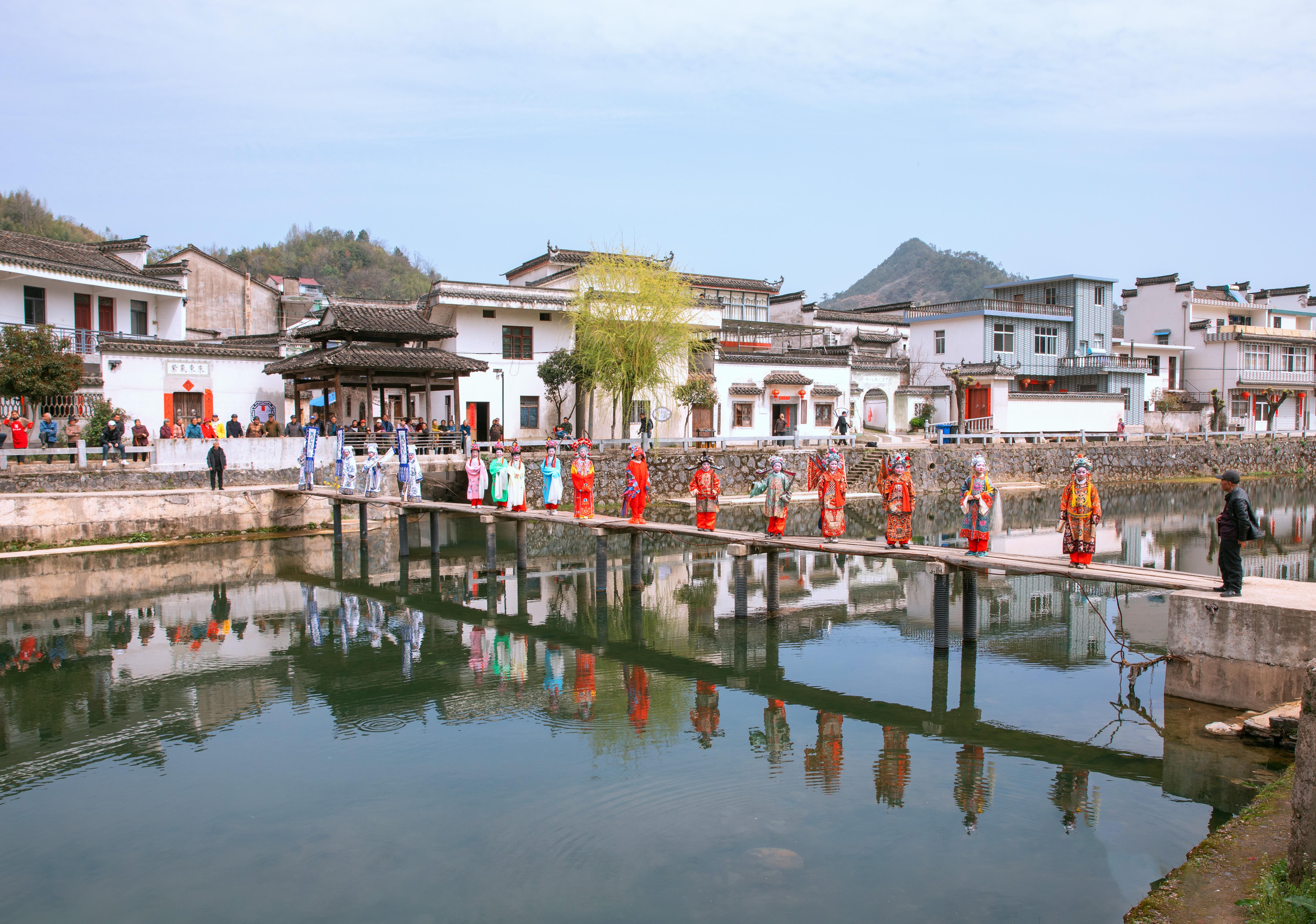 曾经古道悠悠,曾经车马缓缓,曾经的徽州少年走了很远的路,闯荡大江南北,成为徽商、徽匠、徽州艺人,徽剧随之一路唱和,几番起落。老戏骨带童子班,徽剧舞台上下琴响客至,叫嚷喧笑,老树新花,孕育生机。大障山巍峨耸立,登源河温柔流淌,锣鼓一响,又是一场帷幕起。