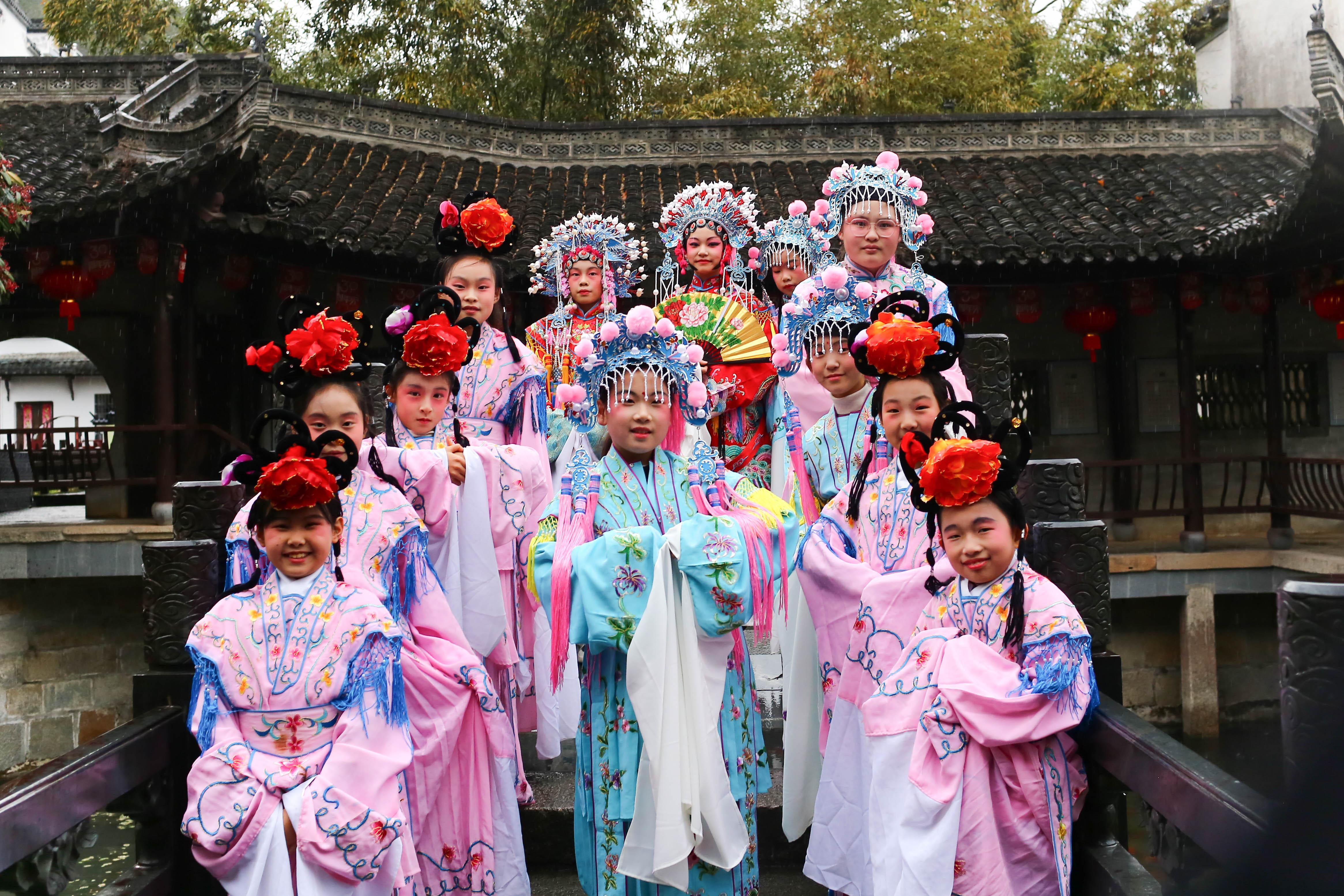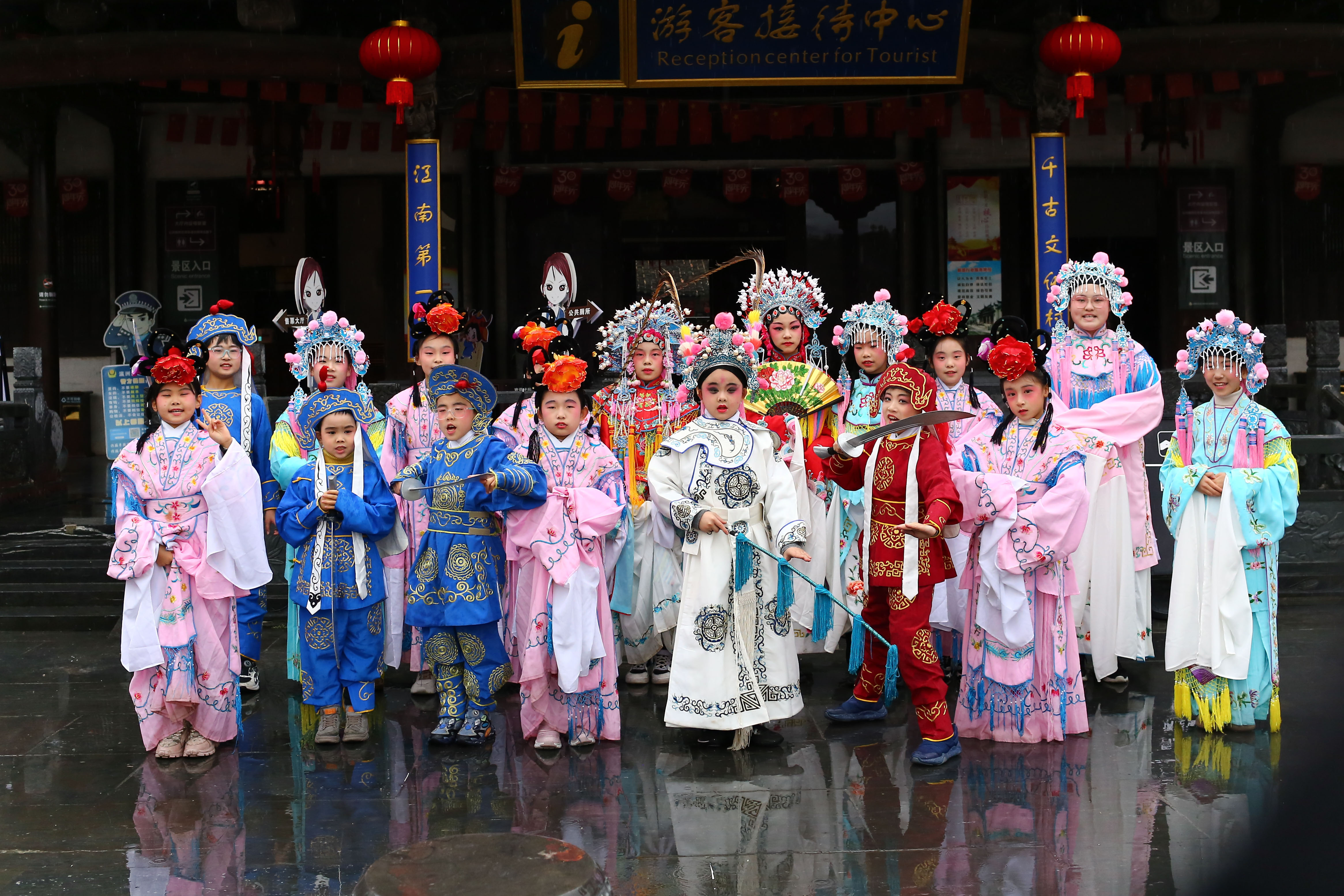 徽戏童子班在伏岭镇太极湖村演出。章晓璇 摄
