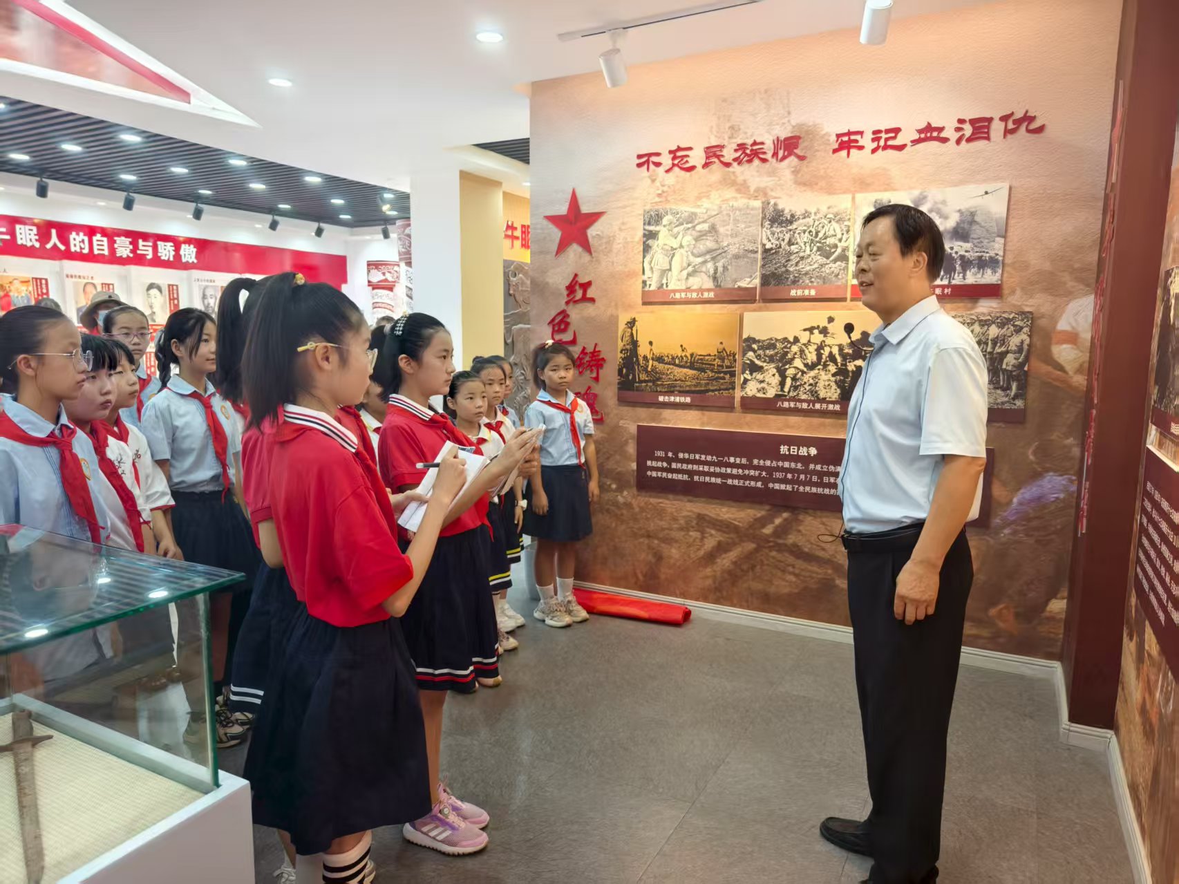“同学们,87年前,侵华日军制造了惨绝人寰的牛眠大屠杀,1780名无辜群众被杀害,这个纪念馆就是为了揭露日寇罪行,提醒后人不忘历史。”新学期伊始,淮北市杜集区段园镇关工委副主任黄化群,在牛眠村红色革命纪念馆接待了一批40余名少先队员参观者。