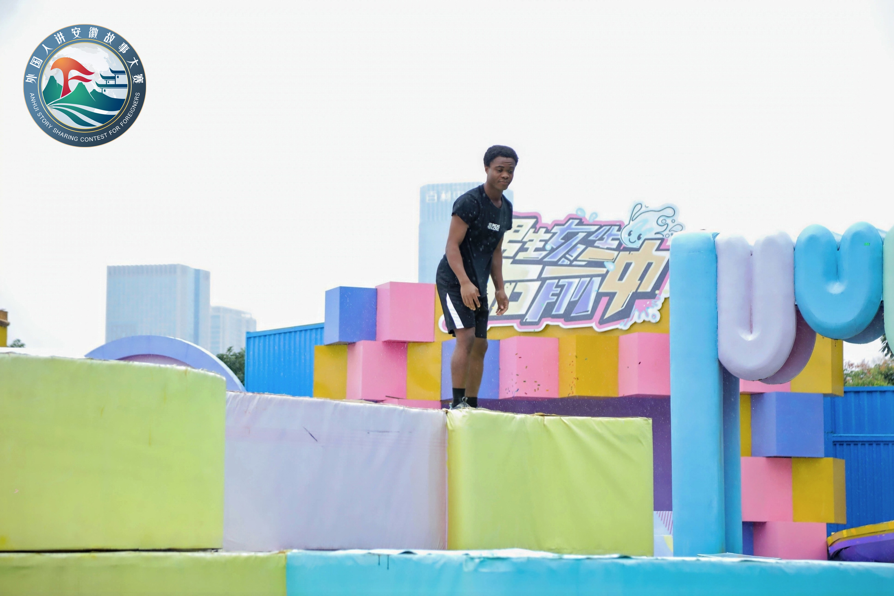 本次活动创新性地与安徽卫视热门栏目《男生女生向前冲》的闯关赛道相结合,吸引了20余名来自不同国家的外国友人亲临现场参与体验。他们不仅为启动仪式增添了国际化的活力氛围,更通过趣味闯关环节展现了中外文化的交融与碰撞。