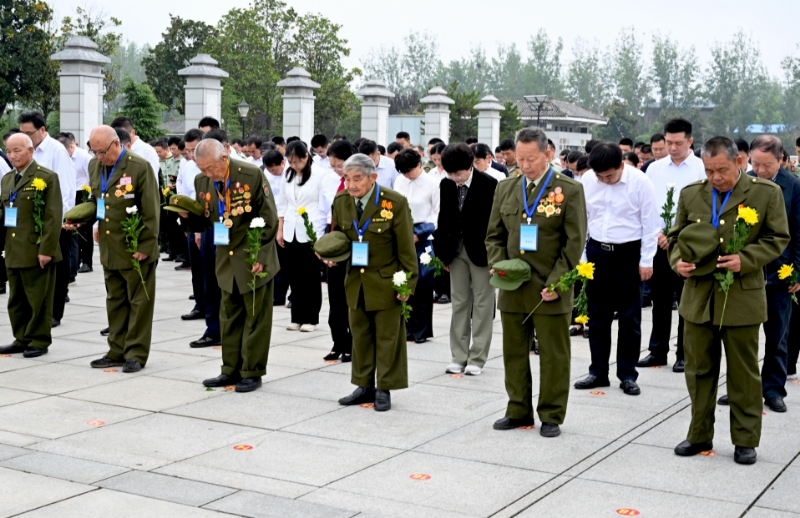 9月30日,在亳州市谯城区皖北烈士陵园,人们向革命烈士敬献花篮。