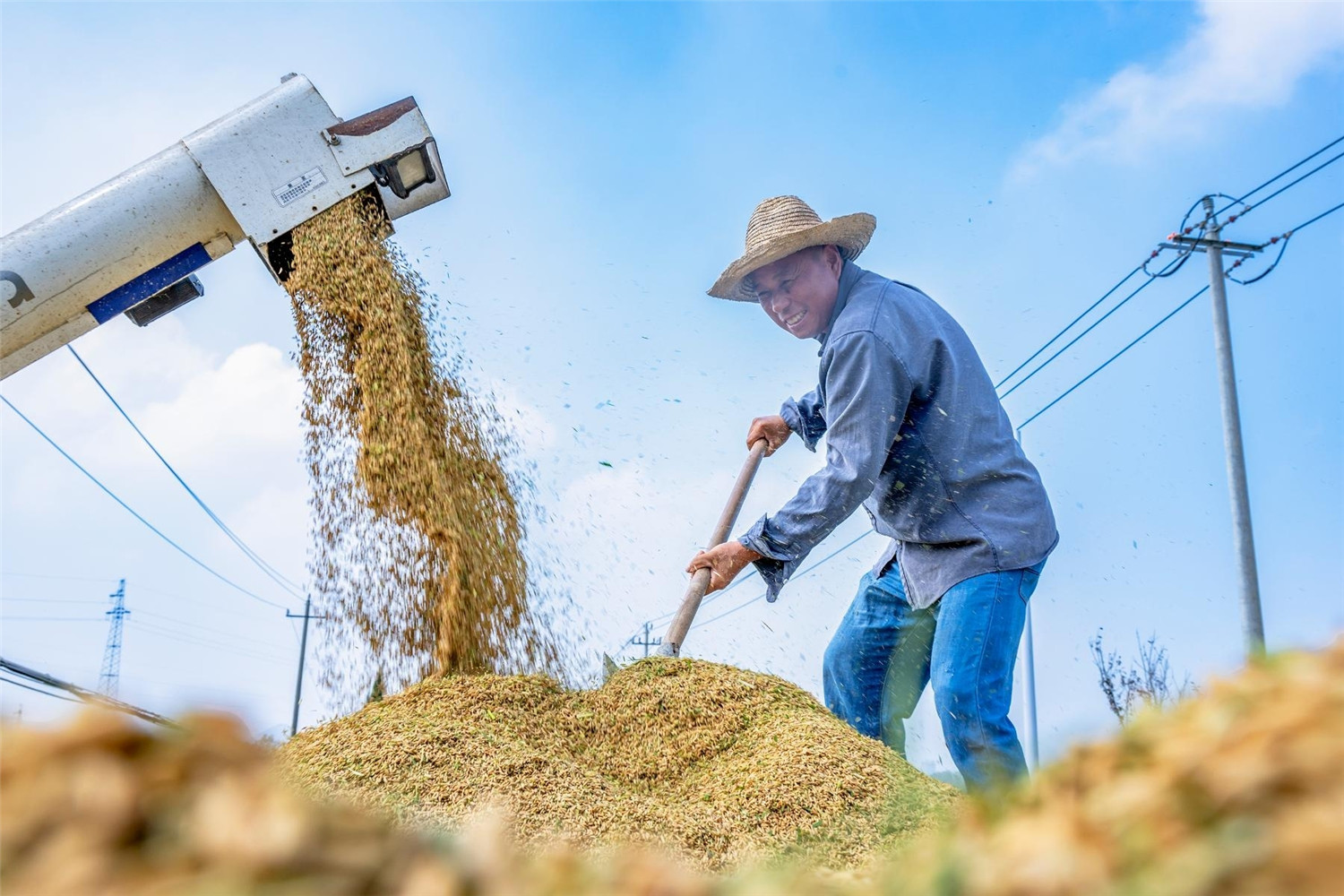 10月8日,芜湖市繁昌区峨山镇城东村,农机手在操作农机收割水稻。 本报通讯员 肖本祥 摄