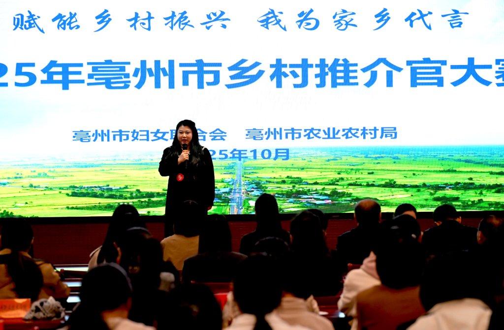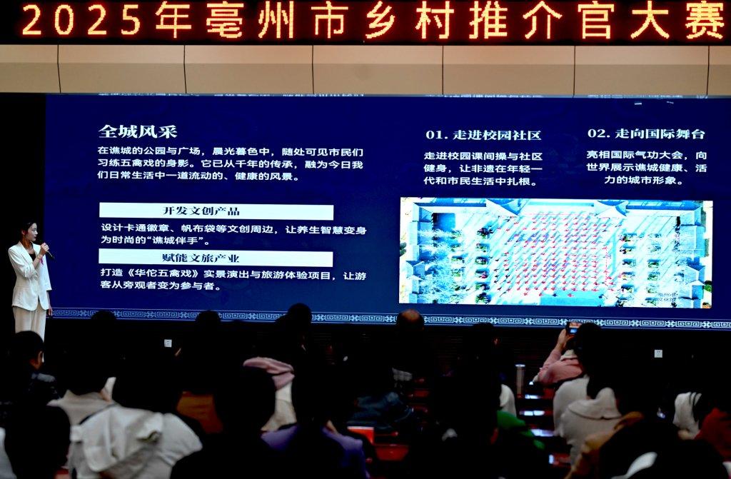 当日,2025年亳州市乡村推介官大赛在亳州职业技术学院举办,来自全市14名推介官分别立足各自乡村的特色亮点,以不同视角讲述“乡村故事”,声情并茂地推介乡村美景、美食、美物、美宿等乡村振兴成果。(安徽商报 元新闻记者 刘勤利 通讯员 张兰兰/摄)