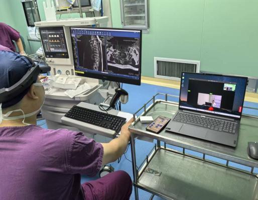 近日,安医大一附院脊柱外科申才良教授团队成功完成一例5G+头戴式设备远程骨科机器人手术,为一位身处安庆市第一人民医院的腰椎骨折患者实施了精准治疗。同期,团队还为一位合并颈椎椎管狭窄症、胸椎间盘突出症、腰椎间盘突出症患者进行了远程会诊,准确判断病因并制定手术方案。这是我省双个首例,这标志着安徽省在骨科机器人临床应用领域持续保持国内领先地位。