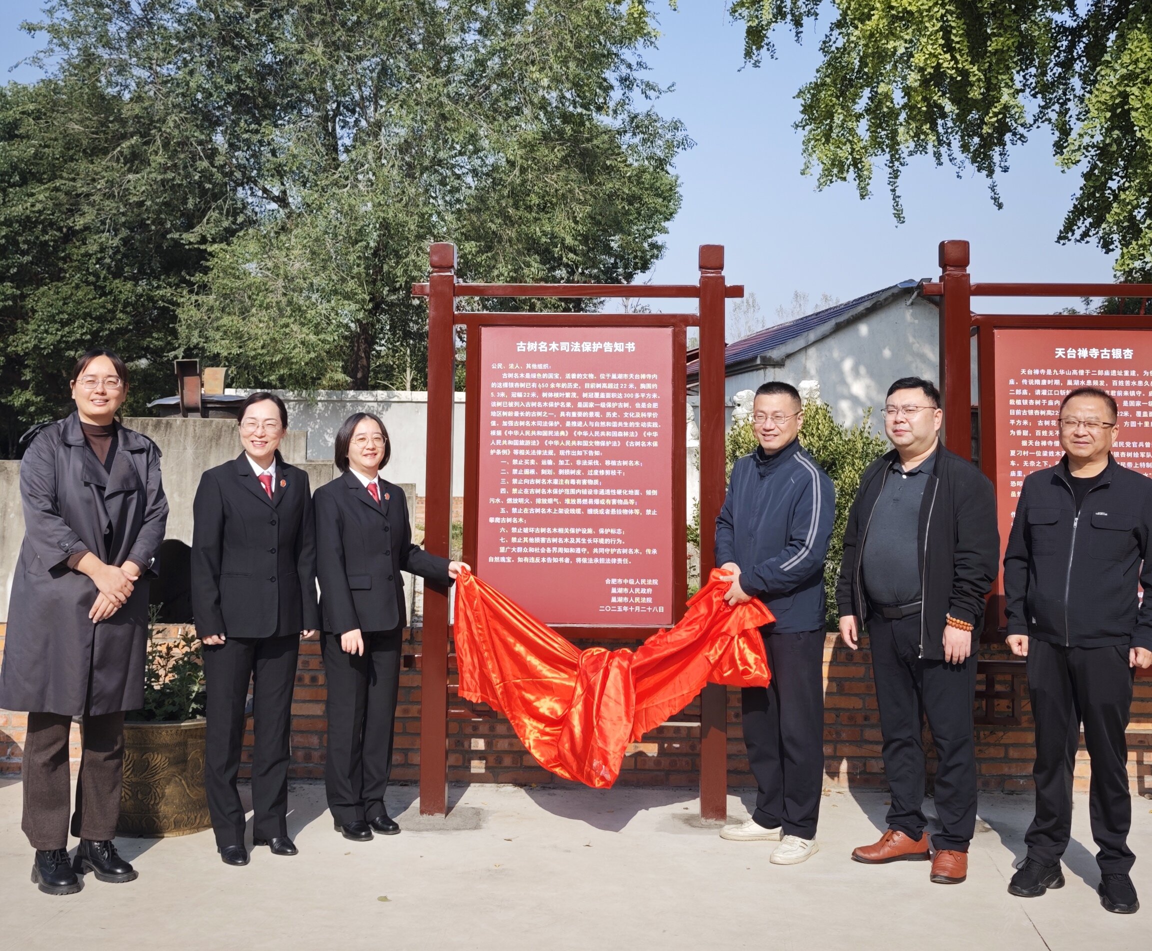 近日,合肥市中院、巢湖市政府、巢湖市法院联合发布古树名木司法保护告知书,为一棵650余年树龄银杏树提供司法保护。