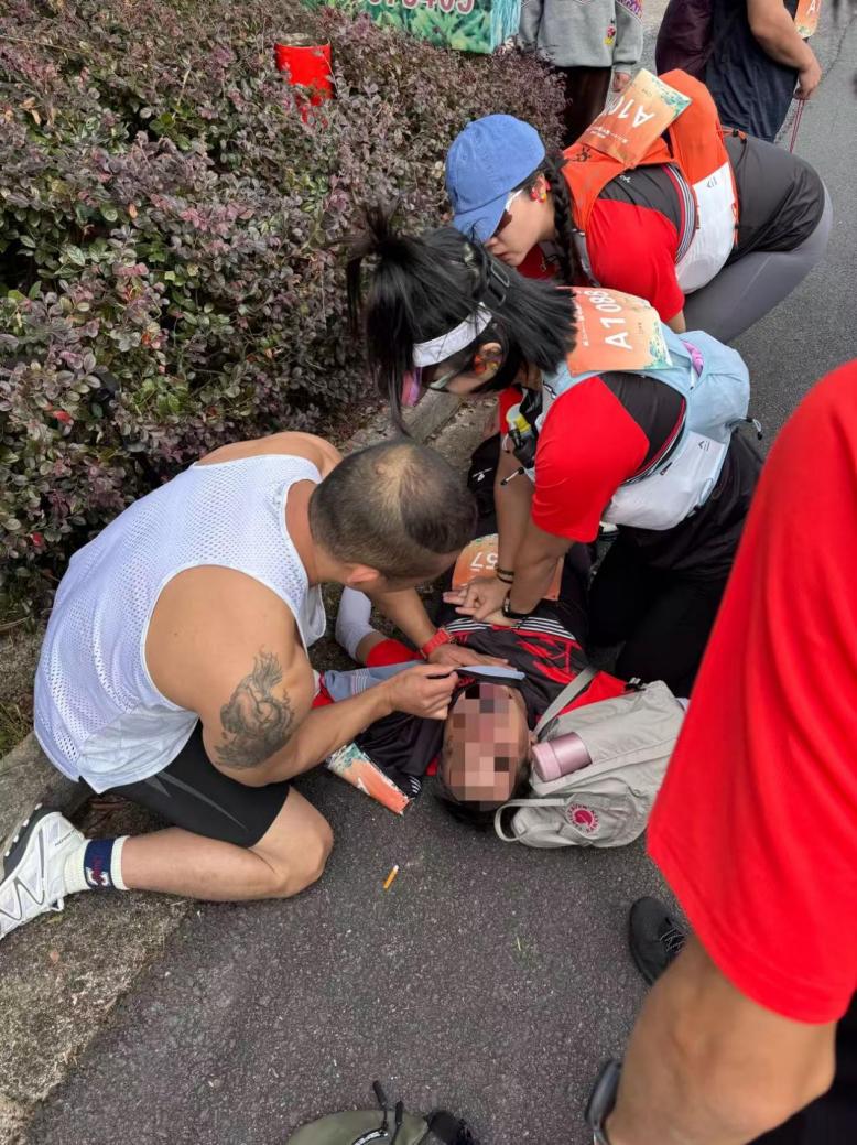 在连续进行四五个心肺复苏循环后,男子的主动脉搏动恢复,自主呼吸也慢慢建立。与此同时,负责赛事医疗急救的志愿者和黄山区医务人员也抵达现场,三人将患者交接后继续参赛。