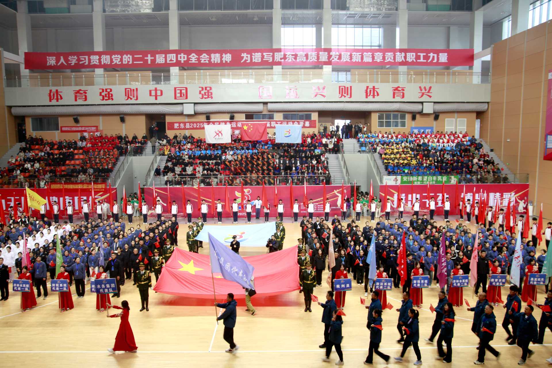 11月14日上午,合肥市肥东县2025全民健身运动会暨第七届职工运动会开幕式在安徽省肥东县全民健身运动中心举行,来自全县各地的干部群众、劳动模范代表、运动员、教练员汇聚一堂,共同见证这场体育盛会的启幕。