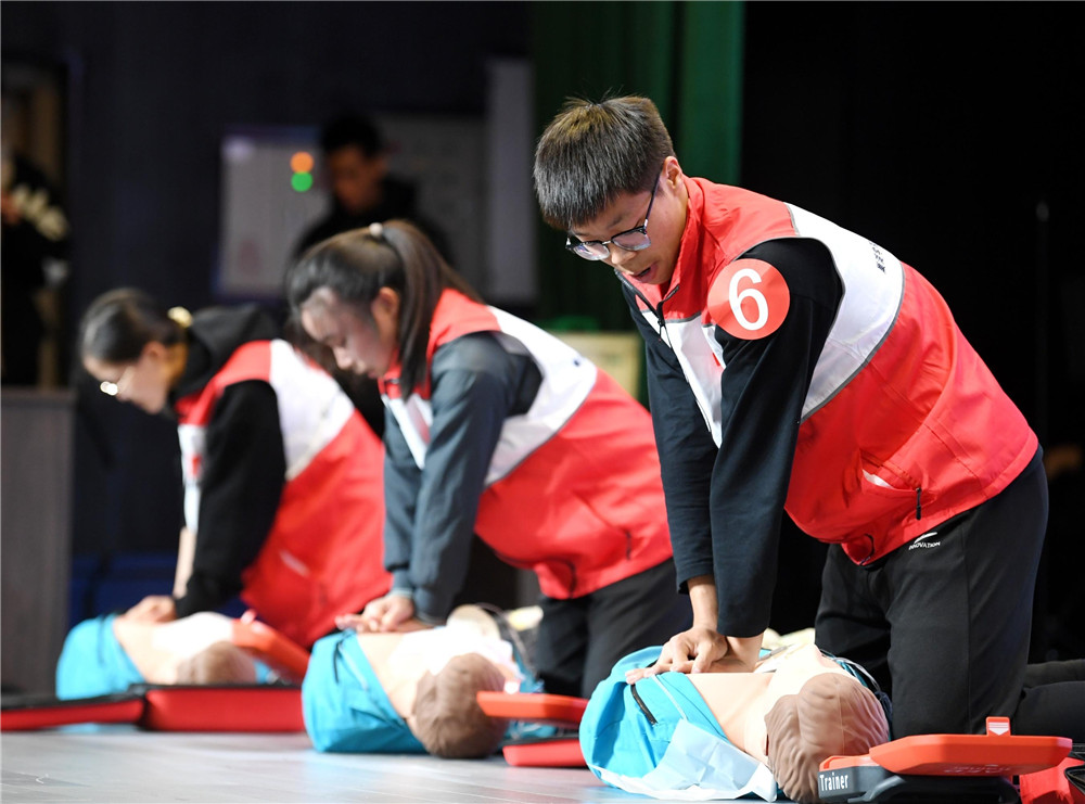 11月19日,巢湖市红十字会联合巢湖学院,举办心肺复苏技能大赛。来自巢湖学院的28名学生同台竞技,共同提升校园应急救护能力。本报通讯员 马丰成 摄