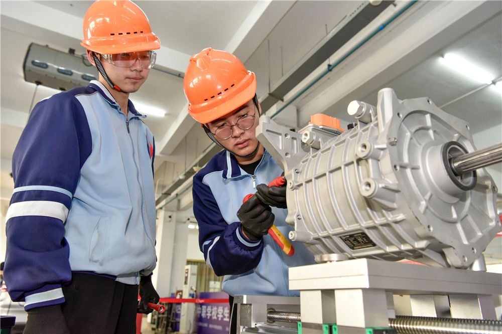11月15日,参赛选手在2025年铜陵市中职学校学生技能大赛中进行新能源汽车维修赛项的比拼。此次比赛旨在推动中等职业学校教育教学改革,展示中职师生职业技能操作水平。本报通讯员 储著传 摄