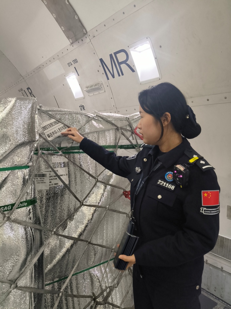 为了让这份“舌尖上的鲜美”能以最快速度从机场抵达市场,合肥出入境边防检查站全程开启“生鲜绿色通道”。针对生鲜货物时效性强、保鲜要求高的特点,提前部署,启动“一航班一方案”专项保障机制。在航班抵港前,对接货运公司和机场相关部门,共享航班动态,优化通关流程;执勤民警快速完成人证查验、飞机清舱等手续,实现货物“即到即检、即检即放”。通过与海关、空港等部门协同作业,压缩口岸停留时间,锁住生鲜的最佳风味。