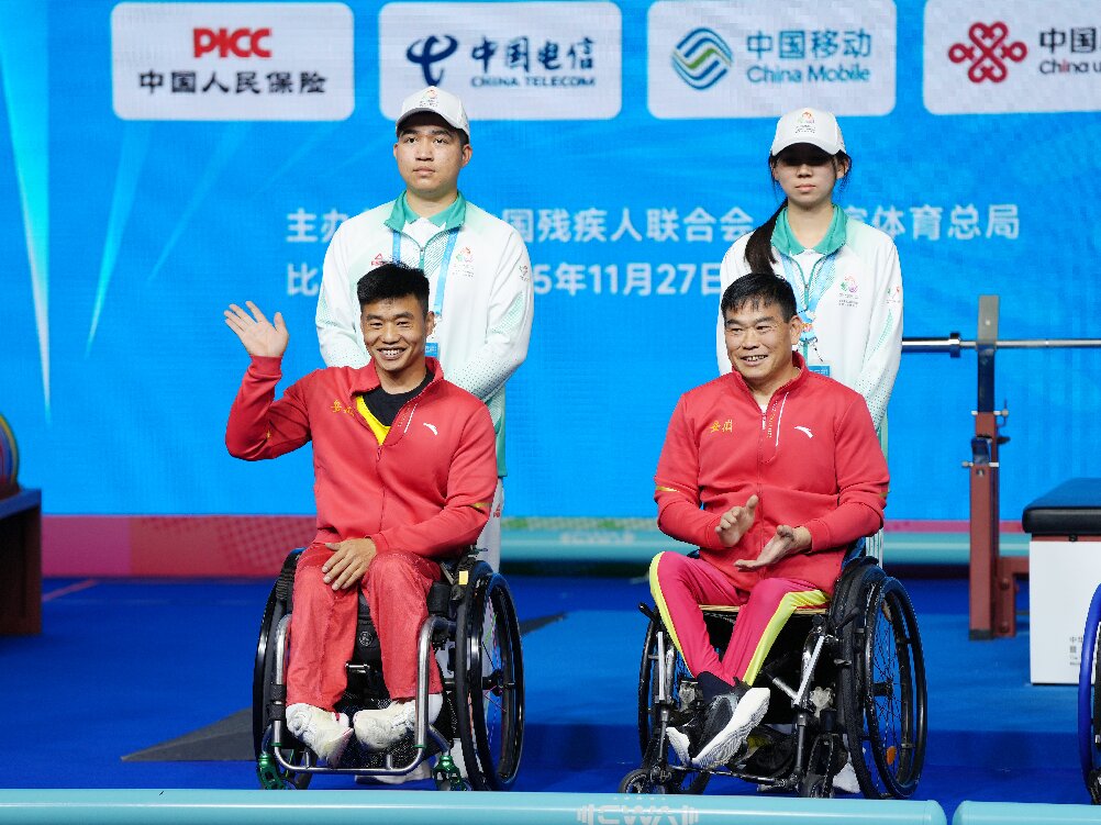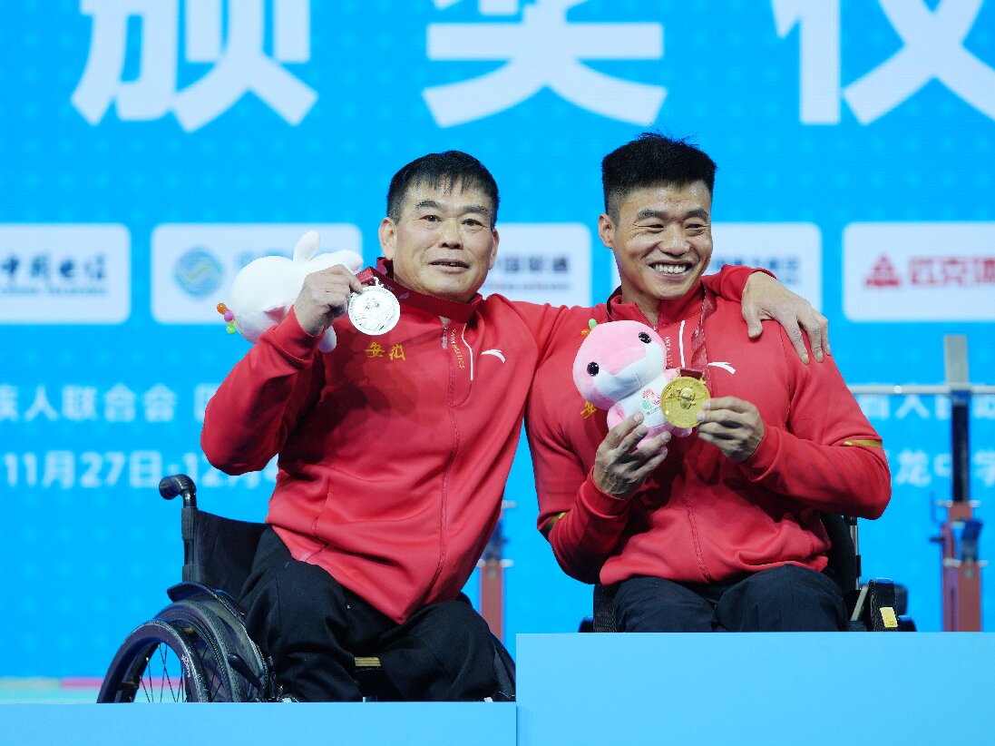 这次比赛,杨井浪和教练王键同台竞技,师徒二人包揽了男子54公斤级的金银牌。王键是2004年雅典残奥会男子举重56公斤级比赛冠军,而从第四届全国残运会开始到今年的第十二届,他已是连续9次参加全国残运会的老将,在国际国内残疾人举重运动领域都颇有名望。近年来,王键既当教练带徒,又继续作为运动员参赛。如今,即便年逾五十,他也依旧宝刀不老,在赛场上叱咤风云。