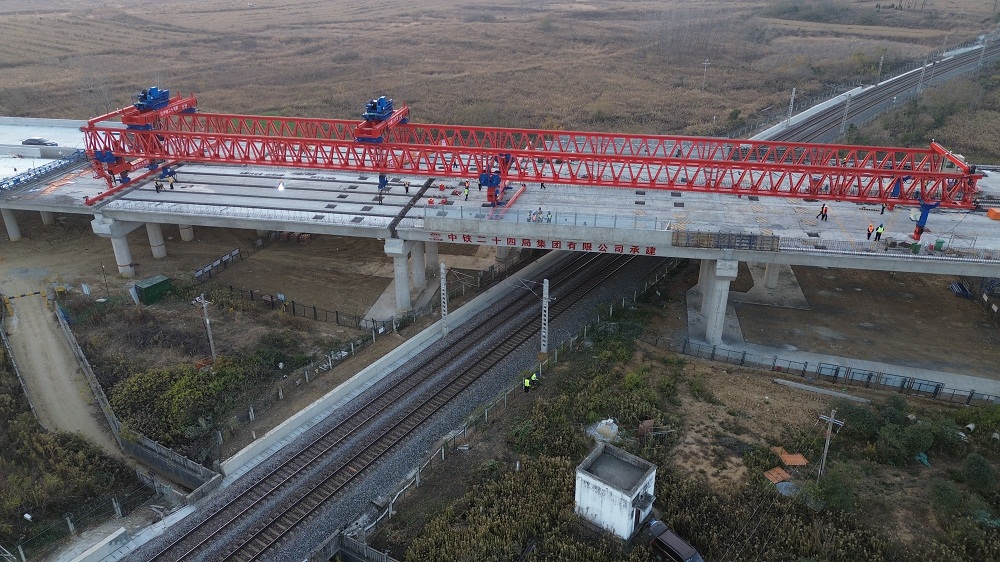 “该项目穿越淮南铁路属于国铁Ⅰ级双线电气化铁路,为干线铁路,涉铁段施工可以说是整个项目的‘咽喉工程’。”据该项目的负责人介绍,与常规桥梁施工不同,该工程面临多重考验。“主要包括施工区域紧邻淮南铁路干线,日均通行列车频密,安全管控难;铁路跨10榀箱梁架设必须在有限的封锁时间内完成。”随着架梁施工完成,该项目也全面转入桥面系施工阶段。整个项目竣工后,将有效分流合肥绕城高速的过境交通压力,进一步完善合肥市域高速公路网络布局。
