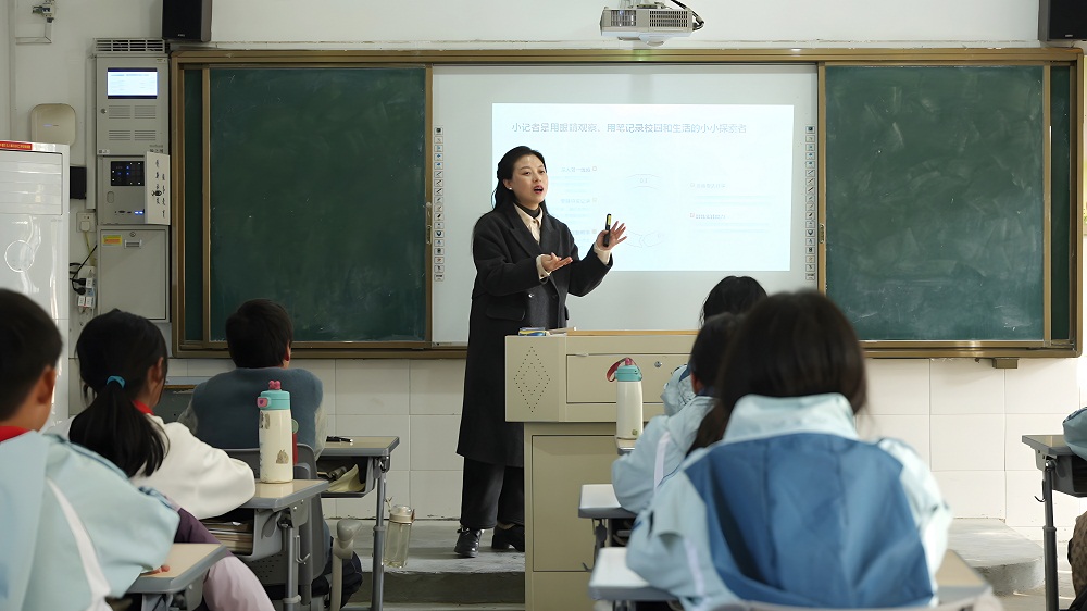 而在隔壁六(一)班的教室里,气氛更加活泼。安徽商报社记者周梅以“小记者成长记”为主题,用游戏互动的方式,引导孩子们如何用眼睛观察、用嘴巴提问、用耳朵倾听。“如果你来采访今天捐书的叔叔阿姨,你最想问什么问题?”周梅的话音刚落,同学们纷纷举手回答。“我想问,这些书你们是怎么选出来的?”“你们小时候最爱看什么书?”……孩子们质朴而充满童趣的问题,让在场的所有大人都笑了起来。小学生陈浩冉在课后兴奋地说:“原来记者不只是电视里那样,我发现故事、问为什么,我也能当小记者啦!”