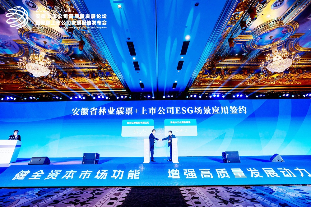 12月9日,2025安徽上市公司高质量发展论坛暨安徽上市公司发展报告发布会在合肥召开。会议同时进行安徽省林业碳票+上市公司ESG场景应用签约仪式,国元证券成为安徽首家落地“林业碳票+上市公司ESG场景应用”的上市企业,深度融入安徽省碳市场进程。