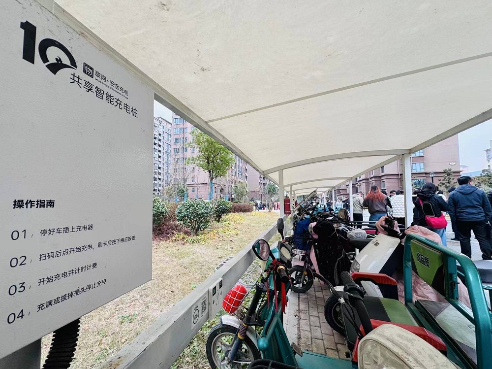 傅丹丹所住的滨河苑小区是回迁安置小区,于2022年7月投入使用。由于前期缺乏充电棚、充电桩等功能性设施,停车难与充电难成为居民最迫切的“痛点”。近两年来,随着入住人口增加,大家对安全便捷充电的需求愈发迫切。