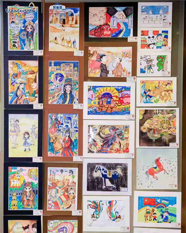 中、乌两国青少年儿童,为“乌兹別克斯坦中国旅游年”创作的给绘画作品。