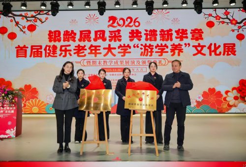 12月26日下午,“银龄展风采 共谱新华章——健乐老年大学首届‘游学养’文化展暨学期教学成果展演及颁奖典礼”在该校“游学养”教学实践基地——安徽省六安市紫荆花小镇盛大举行。安徽省老年大学协会副会长聂晓华、池州老年大学常务副校长杨义和、东至县老年大学负责人唐礼勤、 六安市裕安区老年大学校长李胜以及相关领导、嘉宾,与该校600余名师生共同见证了这一银龄盛会。