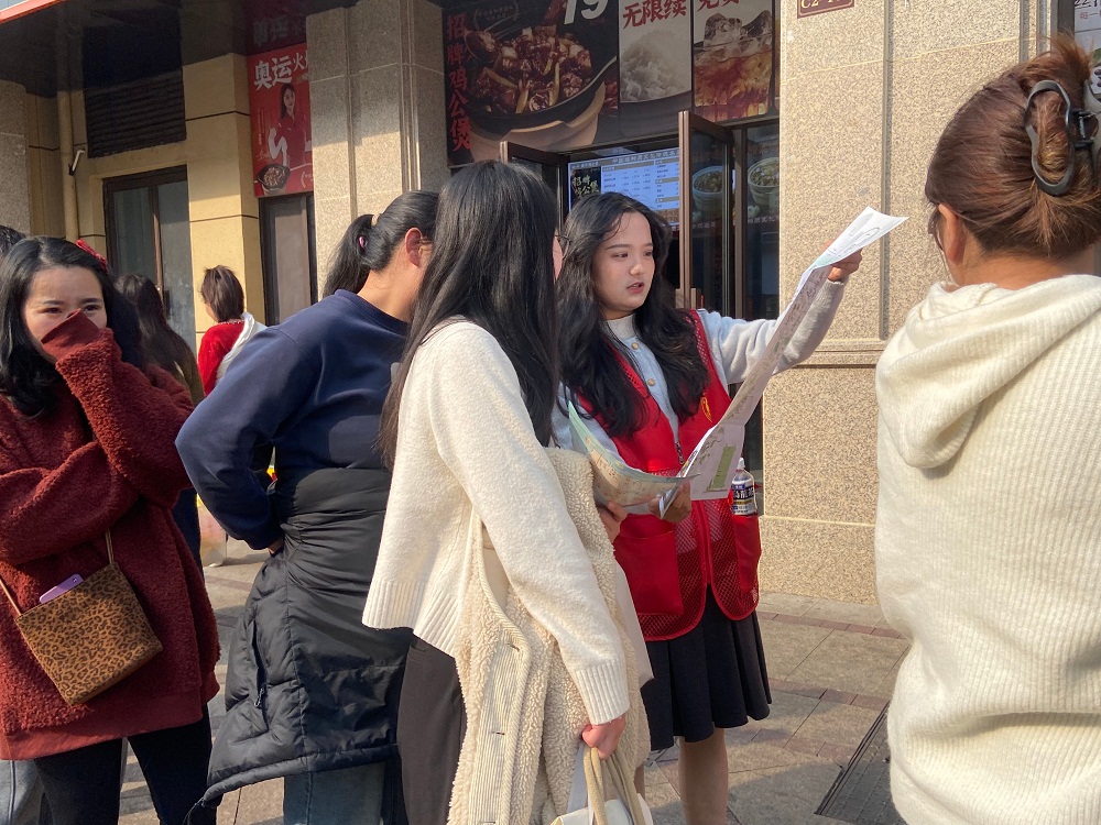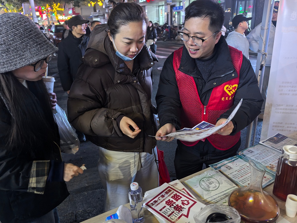 同时,沿街商户也会设立“爱心休息点”,免费提供茶水、取暖、歇脚服务,让游客体会到来自广德的热情;文艺志愿者们还在街头展演非遗“西坞马灯”,医疗志愿者设置义诊点,中老年骑游队队员主动担任“小巷导览员”;志愿者还在高铁站等入口发放含手绘地图、美食攻略的“畅游广德暖心包”,让游客“未到先暖”。