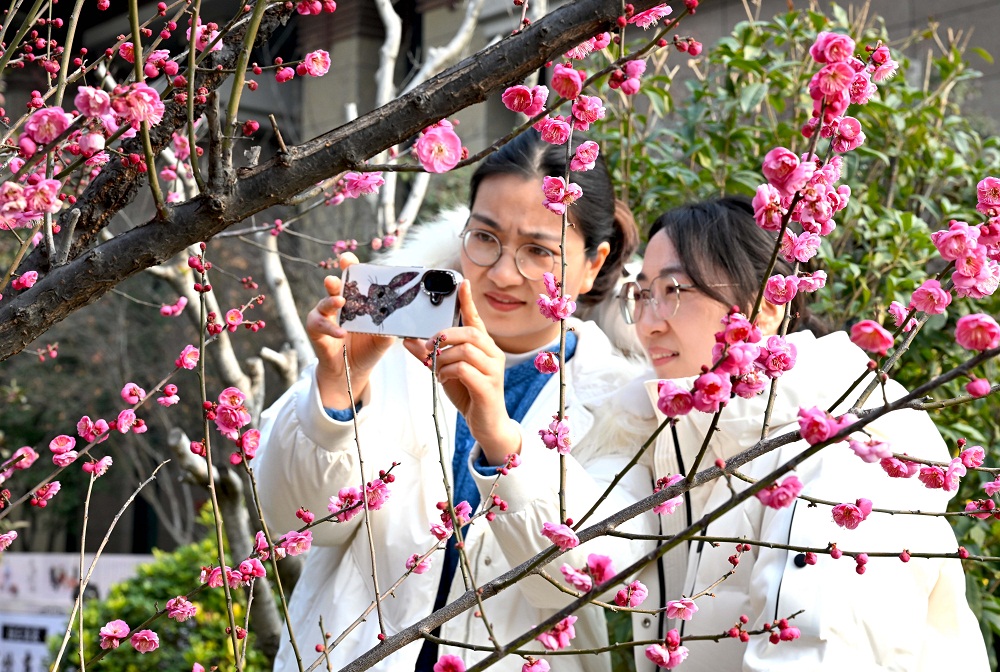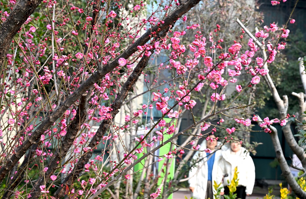 1月5日,在亳州市汤王温泉拍摄的梅花。当日是二十四节气中的小寒。数九寒天,梅花竞相绽放。