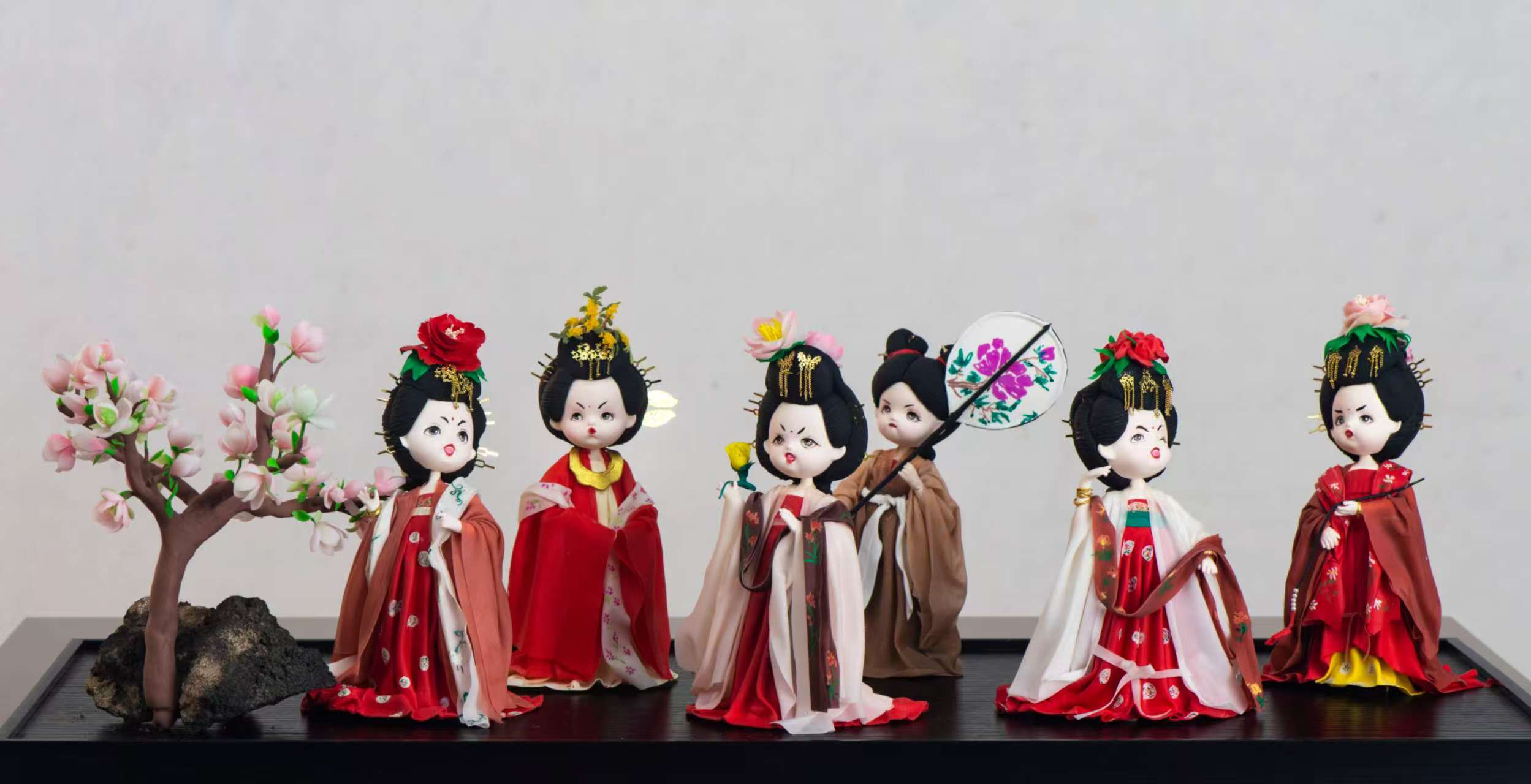 除了塑造唐代名画,近两年,她还用面塑塑造了中华民族56个民族的女性卡通形象。“56个民族的女性,在服装上都各有明显的特点,这一组作品既展现了民族服饰特色,也展现了女性半边天的风采。”涂有萧说。