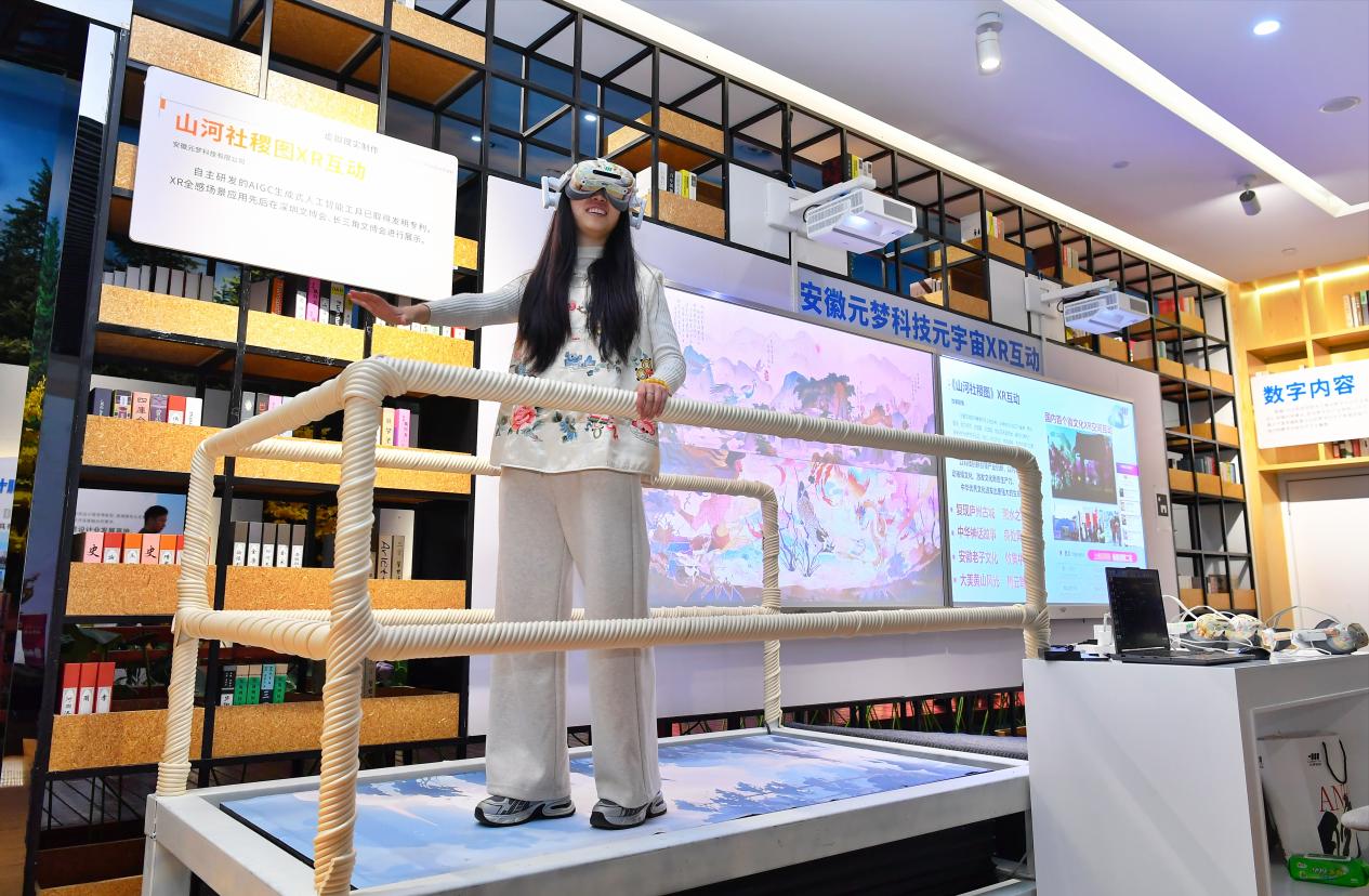 市民在体验安徽元梦科技元宇宙XR互动。程兆摄