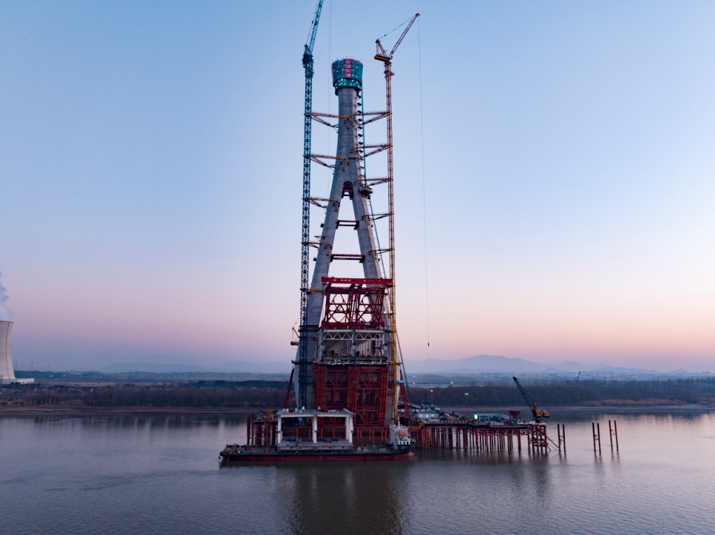 为了让主塔保持稳固,建设团队在基础施工阶段,利用大直径旋挖钻设备,采取定位钻分段分级成桩成孔工艺,将77根直径2.8米、最长112米的钻孔桩精准打入江底深处。针对高空高强度混凝土浇筑、防裂和养护等技术难题,建设团队联合中铁大桥科学研究院优化调配混凝土配合比,“不但确保混凝土顺利泵送至高空,还运用防裂钢板网、雾化加湿及蒸汽保温等措施,实现塔身混凝土内实外美,外观光洁如钻。”牟翔告诉记者,主塔封顶后,大桥建设将重点转入边跨钢梁顶推、主跨钢梁架设及斜拉索安装阶段。整个工程竣工后,将完善安徽省铁路过江通道布局。(安徽商报 元新闻记者 姜志远 通讯员 许文峰 图片由上铁集团提供)