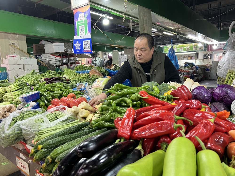 周谷堆市场信息员张飘逸介绍,冬季合肥市场上的茄果类蔬菜主要依靠长途调运,近期部分品种涨幅明显。青椒批发价每斤4-4.3元,去年同期在2元左右。茄子目前批发价每斤3.8-4.5元,去年同期2-2.5元。黄瓜批发价每斤4元,去年同期约2.8元。“近期批发价普遍有所下降,但仍然维持高位。”春节前的菜价贵不贵,还要看天气。“即便天气好,应该也会不比年春节前高一些。”