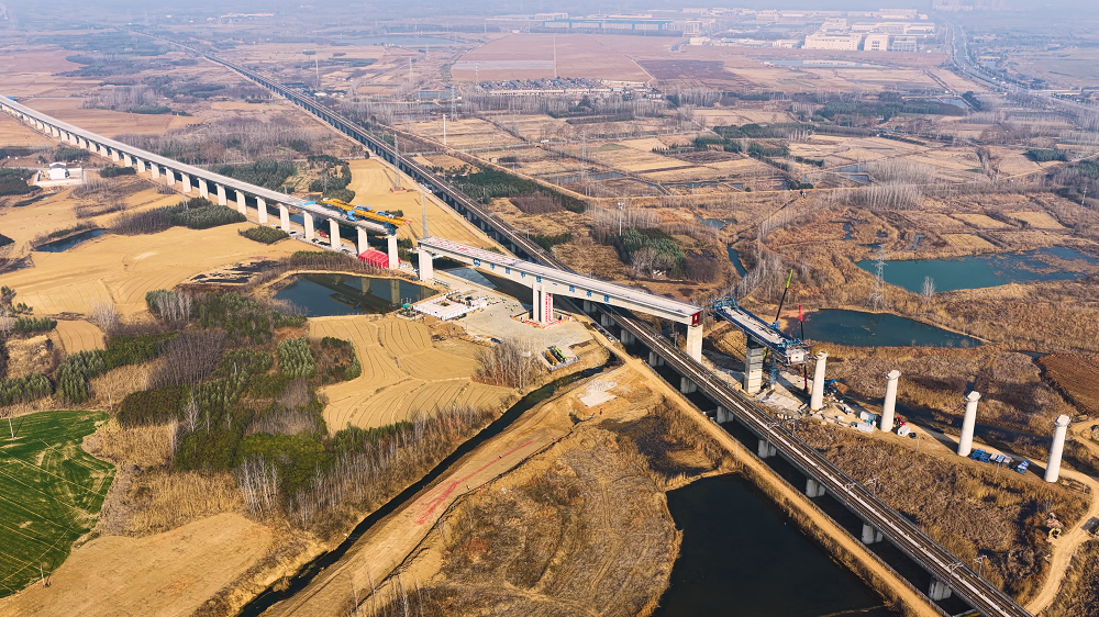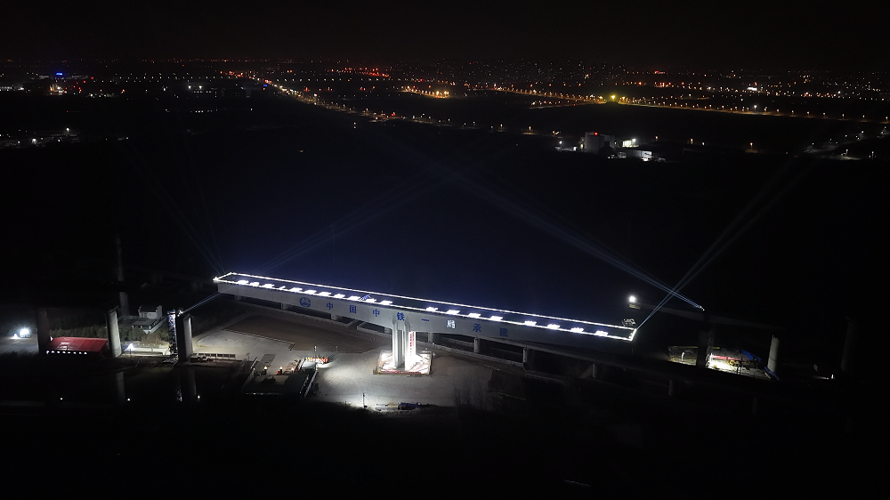 “该梁体总重1.7万吨,与繁忙的京沪高铁线路呈26.3度斜交,具有吨位大、跨度大、转体角度小、精度要求极高、施工环境复杂等特点。”该负责人告诉记者,为确保这一“空中巨构”实现“转得动、转得稳、转得准”,项目团队创新运用动态平衡配重法、球铰精准定位牵引系统等关键技术,利用智能监测系统实时监控转体姿态与受力变化,最终将转体轴线偏差控制在毫米级,成功实现梁体“华丽转身”。