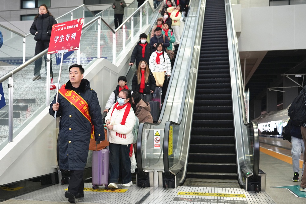 随着阜阳当地高校集中放寒假,学生返乡需求持续释放。为服务好学生流返乡,中国铁路上海局集团有限公司阜阳北站(以下简称“阜阳北站”)积极对接属地高校和企业,提前调研学生返乡热门方向,针对性开行本次团体包车列车,实现“从校门到车站”的一站式闭环服务。“此次学生团体包车的开行,由高校统一收集学生信息,车站专人负责办理团体票业务,本土爱心企业支持,多方联动护送学子们回家。”据阜阳北站营销科科长储茂高介绍,为实现校门到车站的无缝衔接,车站联合地方政府统一安排免费大巴,集中接送学生至阜阳西站,确保雨雪天气出行安全。