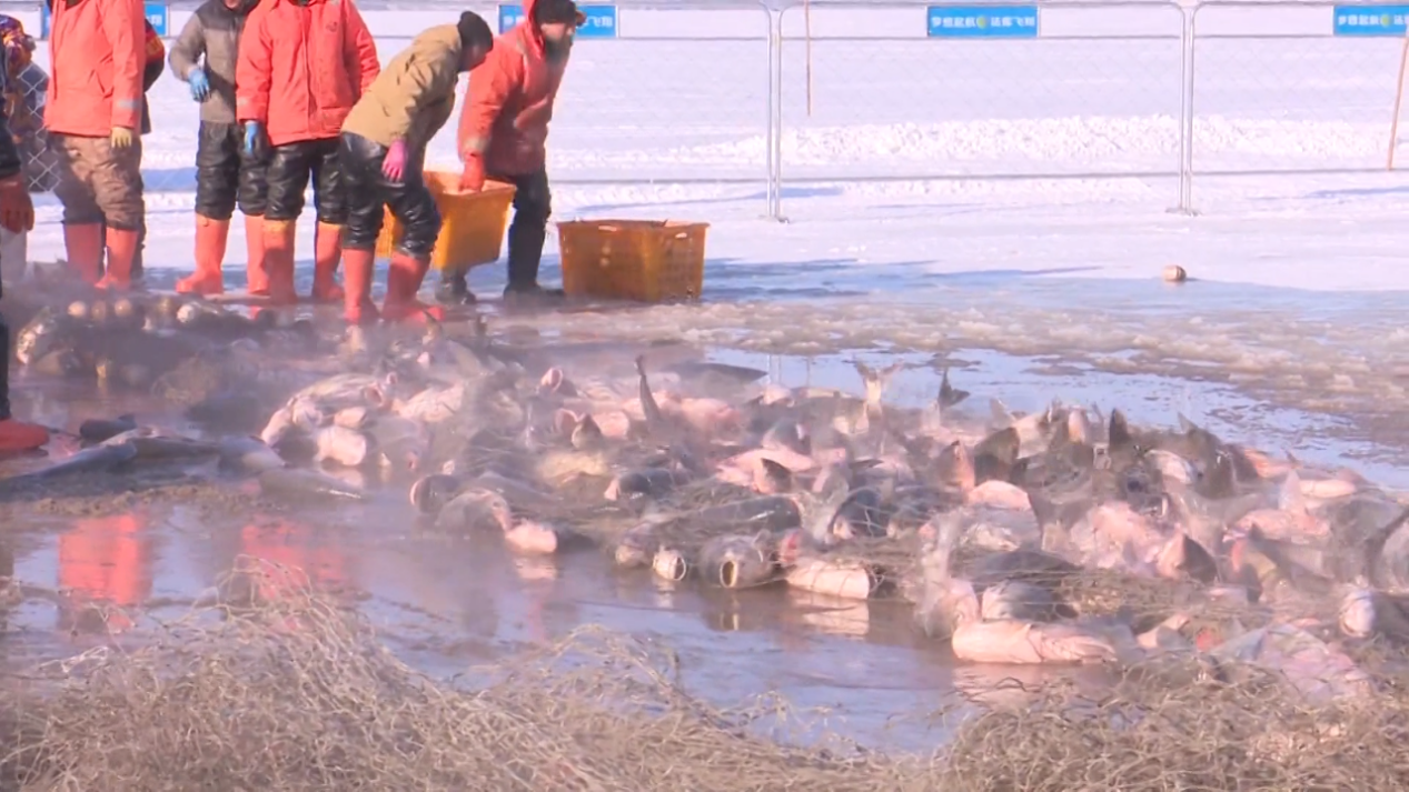图为沈阳法库县财湖冬捕现场