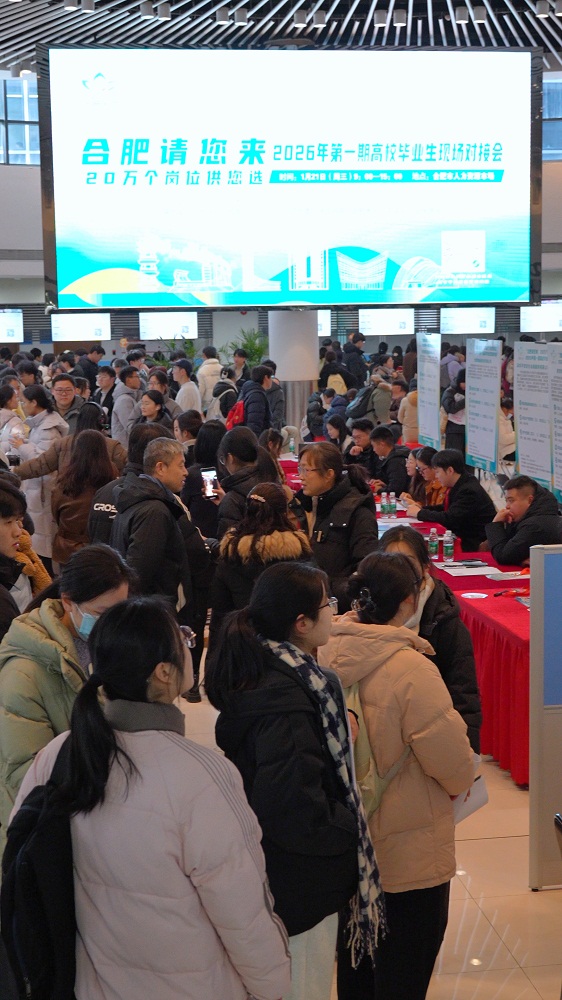 1月21日上午,合肥市人力资源市场内人头攒动,到处是朝气蓬勃的年轻人。“合肥请您来,20万个岗位供您选”2026年第一期高校毕业生现场对接会当天在这里举办。123家参会单位现场提供含技术研发、工程设计、运营管理、市场营销、教育教学、金融服务等5000个就业岗位,满足不同专业背景高校毕业生求职需求。